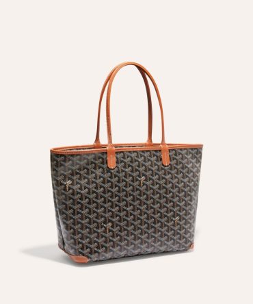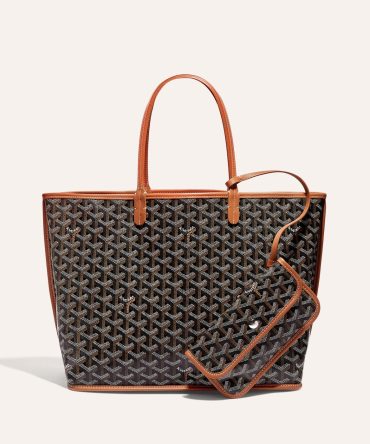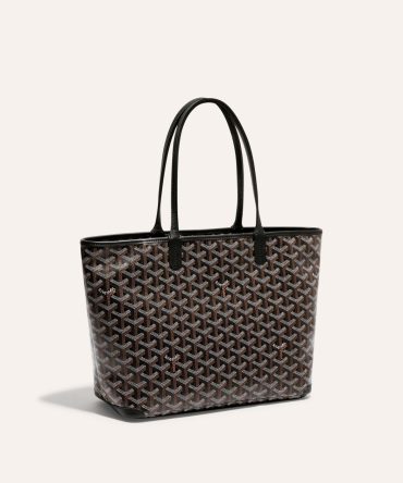 Goyard Goyardine Artois Tote PM Black Canvas & Brown Chevroches Calfskin Palladium Hardware