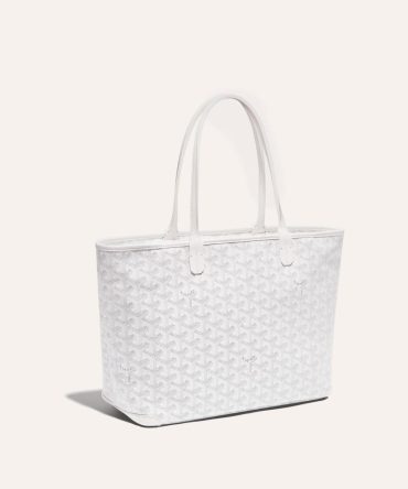 Goyard Goyardine Artois Tote PM White Canvas & Chevroches Calfskin Palladium Hardware