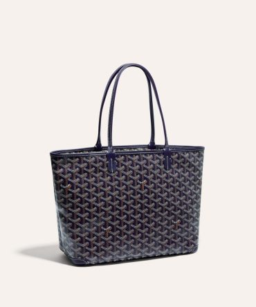 Goyard Goyardine Artois Tote PM Navy Blue Canvas & Chevroches Calfskin Palladium Hardware
