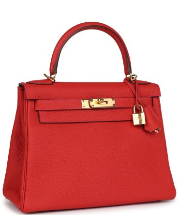 Hermes Kelly Retourne 28 Vermillion Clemence Gold Hardware