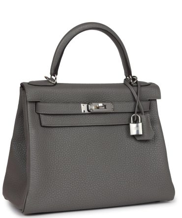 Hermes Kelly Retourne 28 Gris Misty Togo Permabrass Hardware