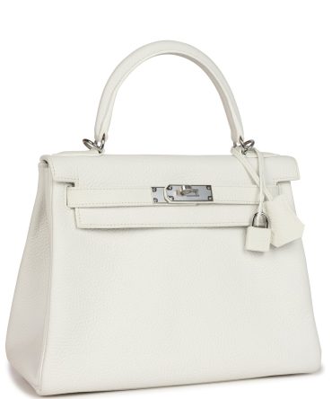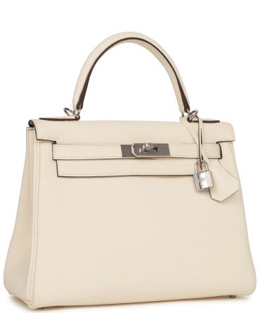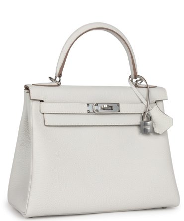 Hermes Kelly Retourne 28 White Clemence Palladium Hardware