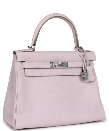 Hermes Kelly Retourne 28 Mauve Pale Clemence Palladium Hardware