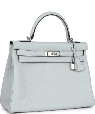 Hermes Kelly Retourne 32 Bleu Pale Clemence Palladium Hardware