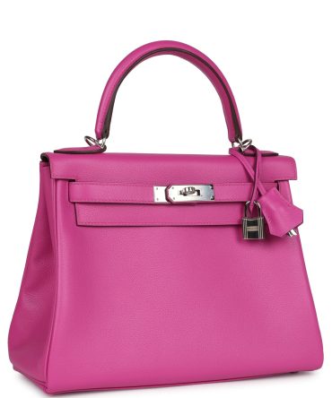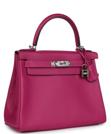 Hermes Kelly Retourne 28 Rose Poupre Evercolor Palladium Hardware