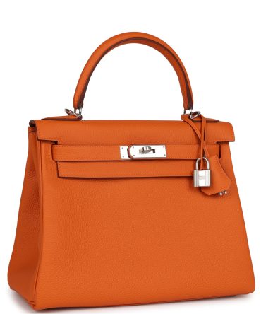 Hermes Kelly Retourne 28 Orange Togo Palladium Hardware