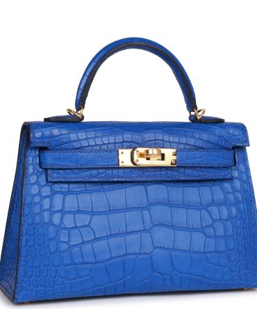 Hermes Kelly Sellier 20 Bleu Royal Matte Alligator Gold Hardware