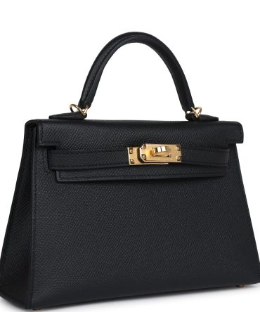 Hermes Kelly Sellier 20 Black Epsom Gold Hardware