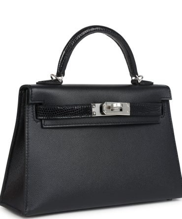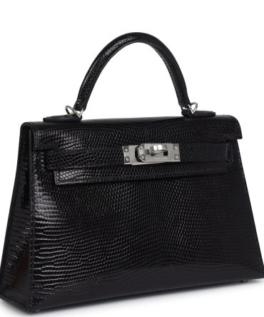 Hermes Kelly Sellier 20 Black Madame and Shiny Varanus Lizard Touch Palladium Hardware