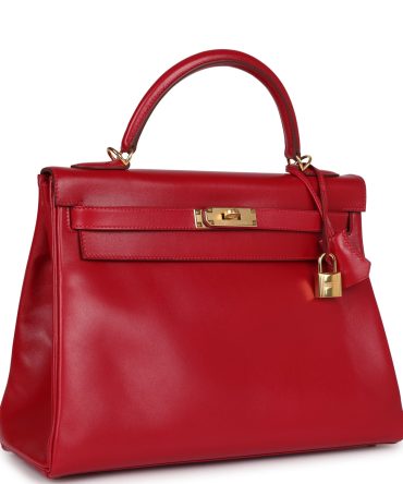 Hermes Kelly Retourne 32 Rouge Vif Tadelakt Gold Hardware