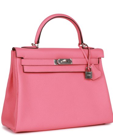 Hermes Kelly Retourne 32 Rose Azalee Clemence Palladium Hardware