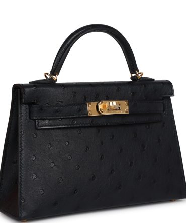 Hermes Kelly Sellier 20 Black Ostrich Gold Hardware