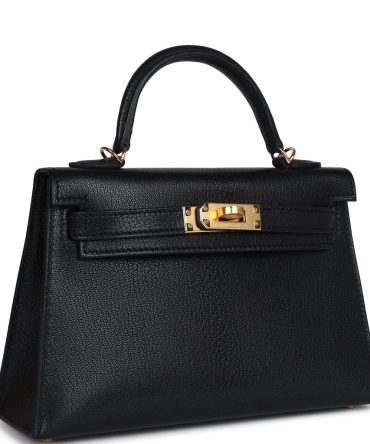 Hermes Kelly Sellier 20 Black Chevre Mysore Gold Hardware
