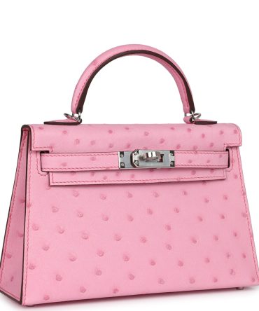 Hermes Kelly Sellier 20 Bubblegum Ostrich Palladium Hardware