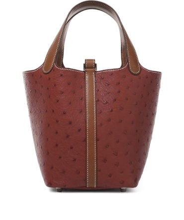 Hermes Fauve Barenia and Brique Ostrich Touch Picotin Lock 18 Palladium Hardware