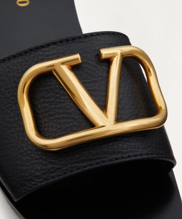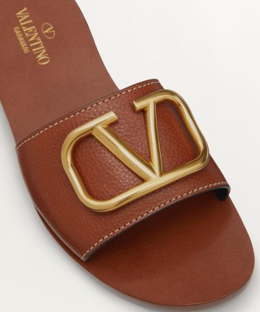 VLOGO SIGNATURE SLIDE SANDAL IN GRAINY COWHIDE WITH ACCESSORY