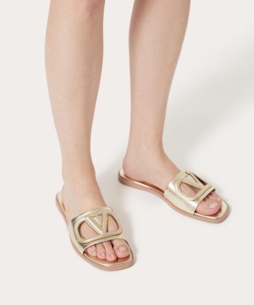 VLOGO CUT-OUT LAMINATED NAPPA LEATHER SLIDE SANDAL