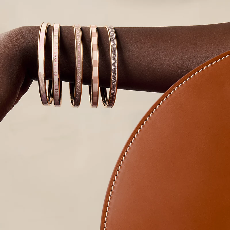 A Vos Crayons’ pattern printed enamel extra narrow bracelet, designed by Leigh P. Cooke. Narrow bracelets are perfect for stacking! Made in France. Metal texture: Rose gold plated Inner diameter: 6.3 cm Width: 5.6 mm