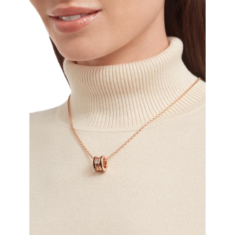 B.zero1 Rock pendant necklace, 18K rose gold, inlaid with ceramic.