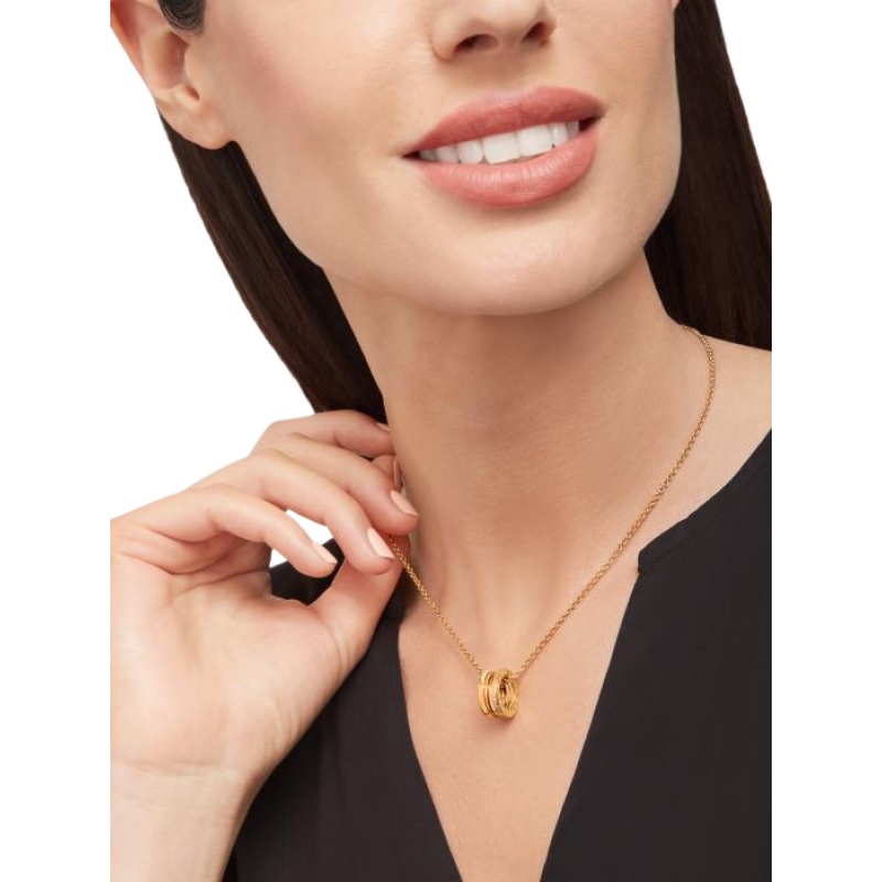 B.zero1 pendant necklace in 18K yellow gold with semi-pavé diamonds.