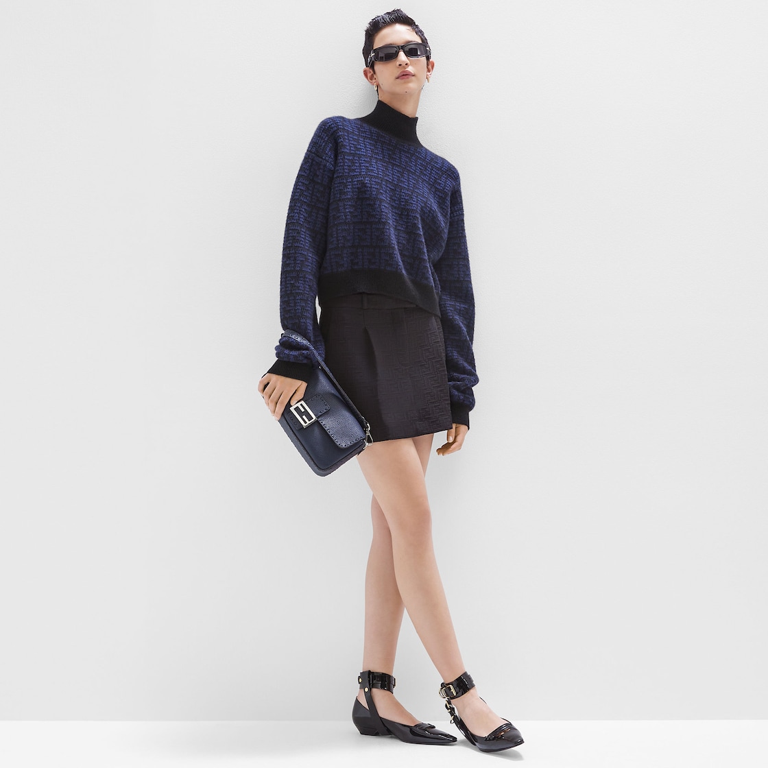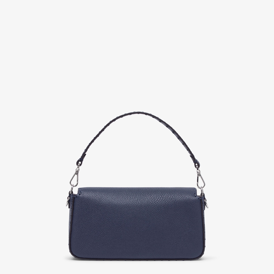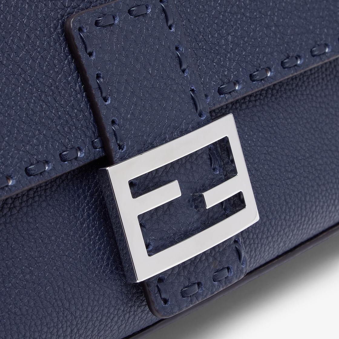 Iconic medium Baguette bag, made of midnight blue Cuoio Romano leather embellished by hand with tone on tone stitching. Decorated with an FF clasp.