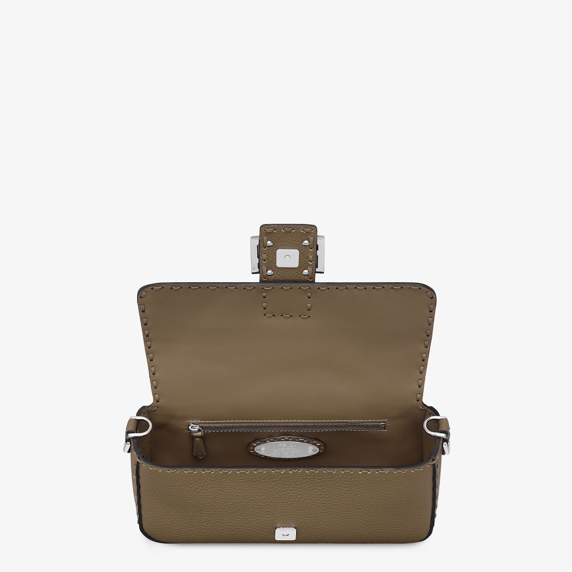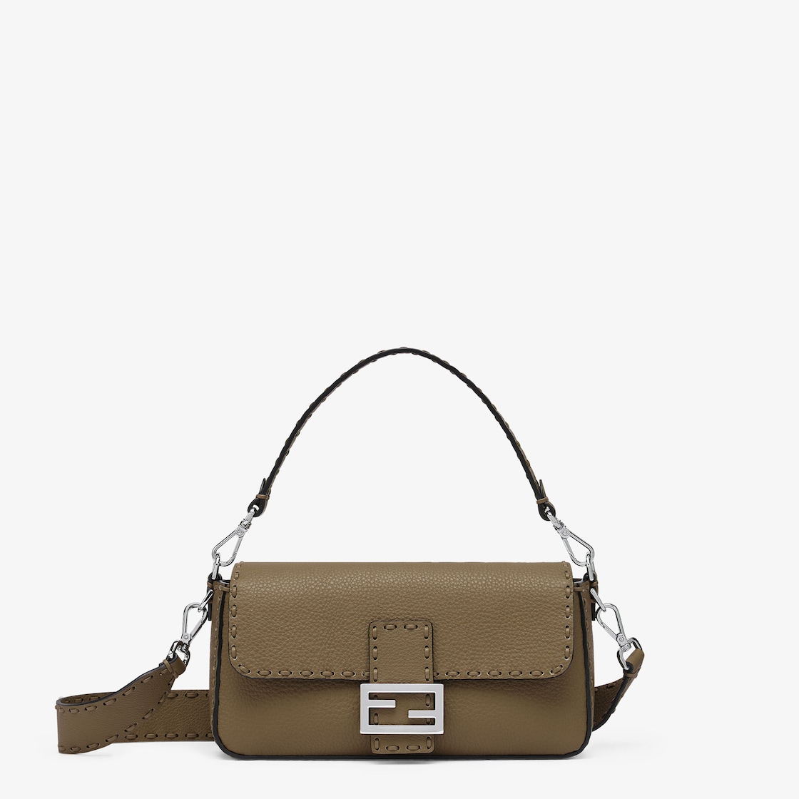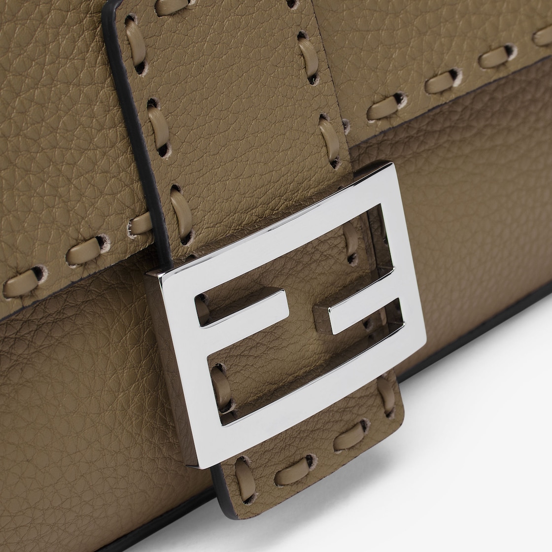 Medium, iconic Baguette bag made with 612tone-on-tone macro topstitches, an emblem of the iconic Selleria workmanship handed down through generations of Fendi artisans since 1925.