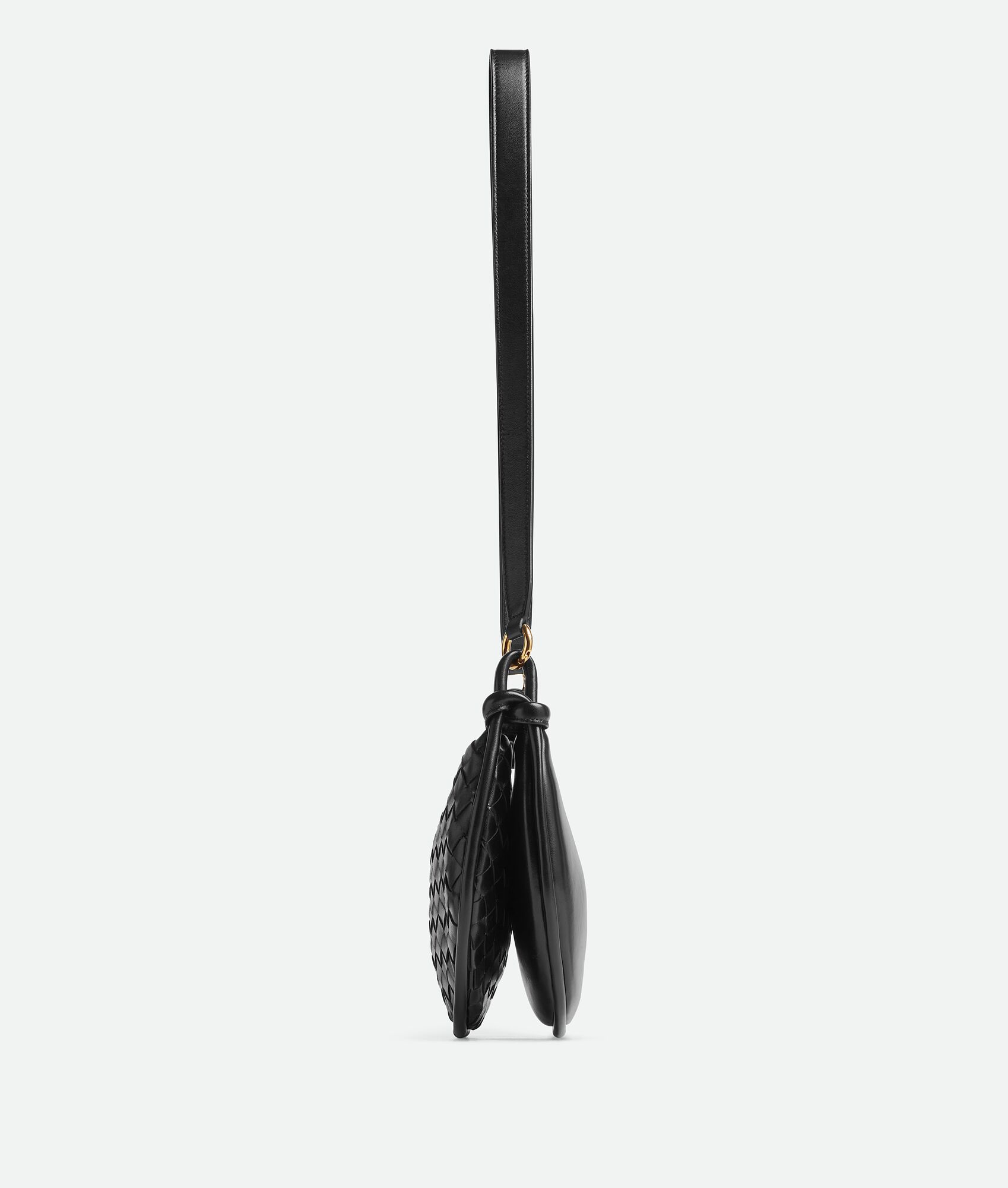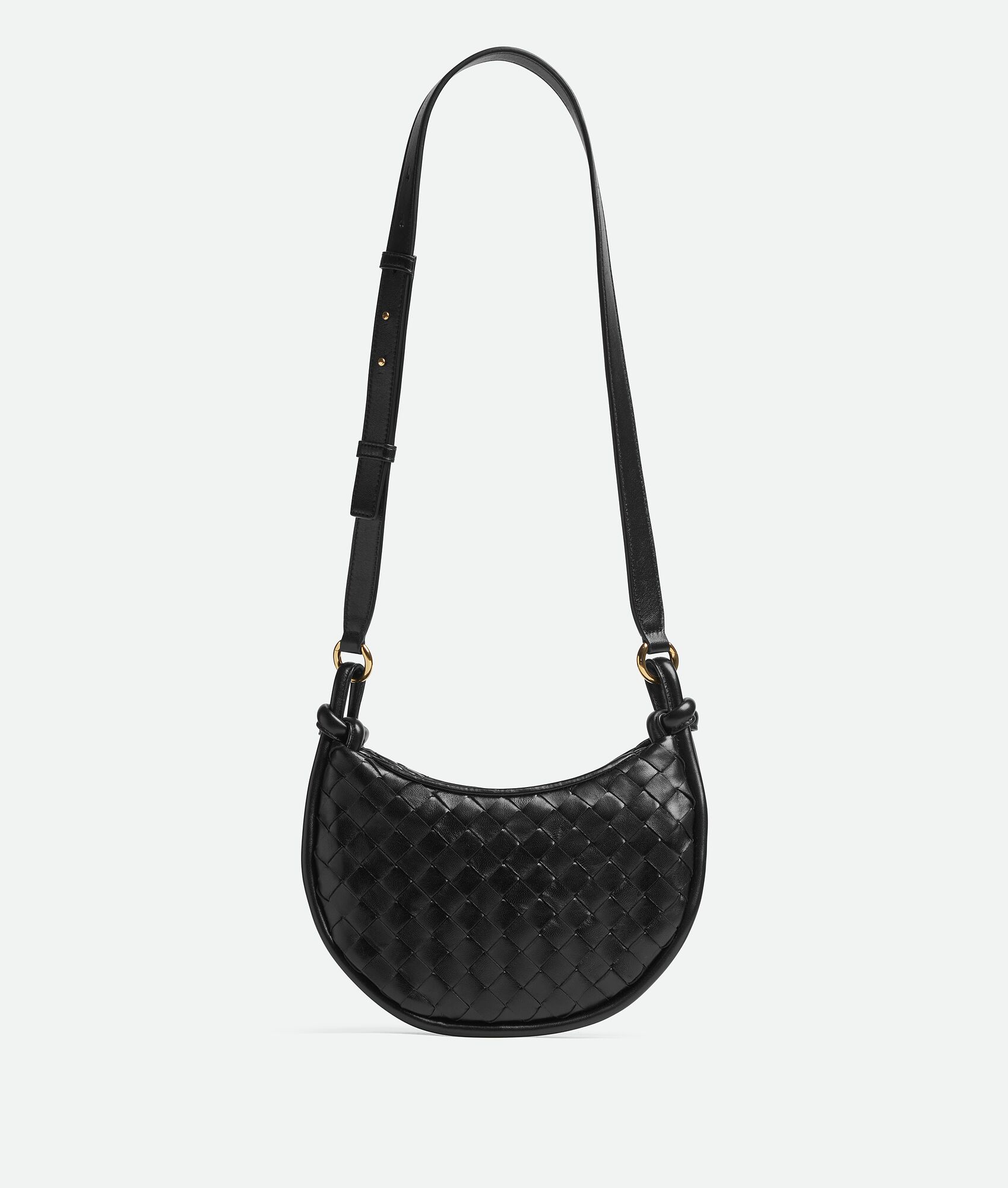 Small Intrecciato and smooth leather half-moon cross-body bag with adjustable strap