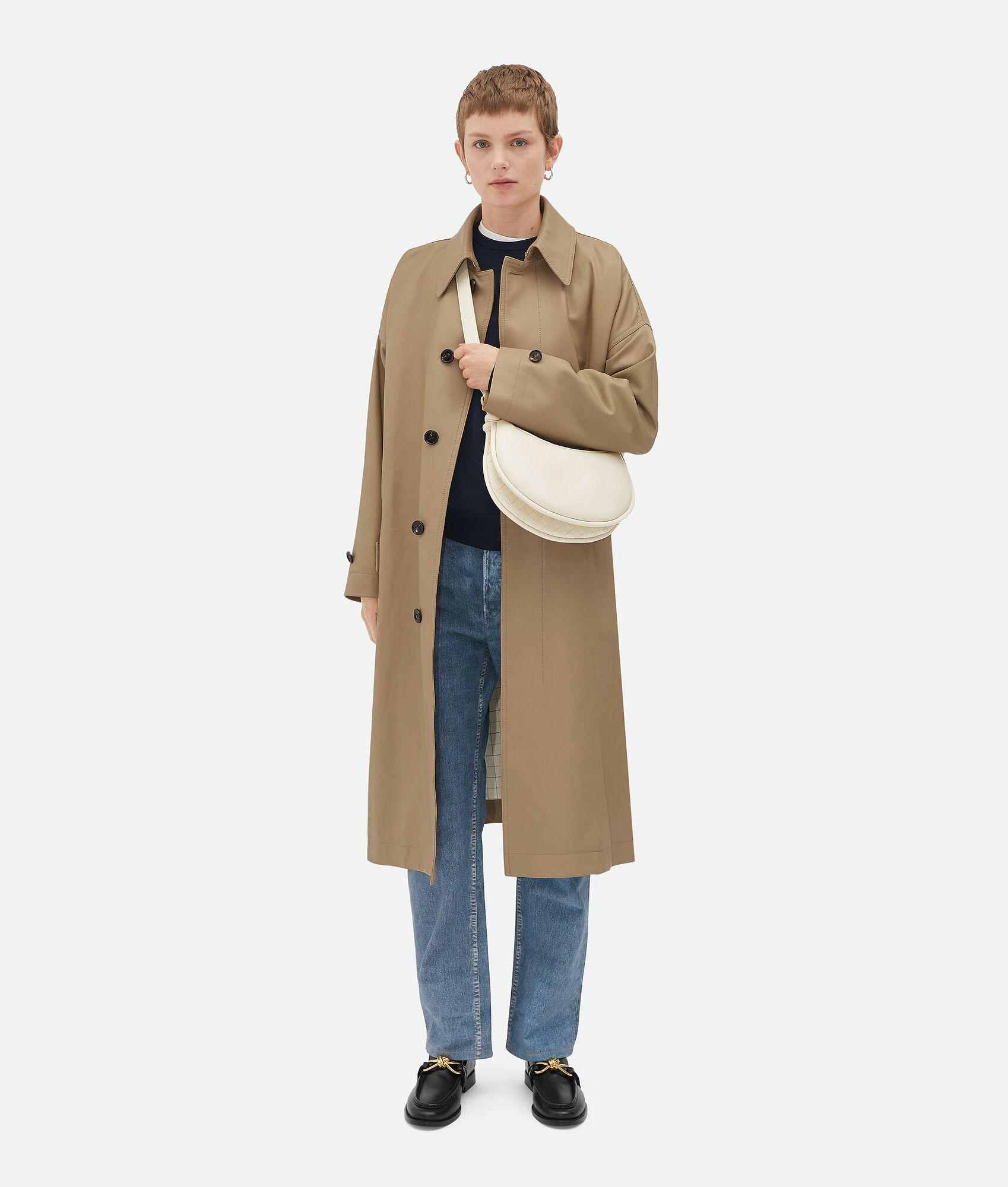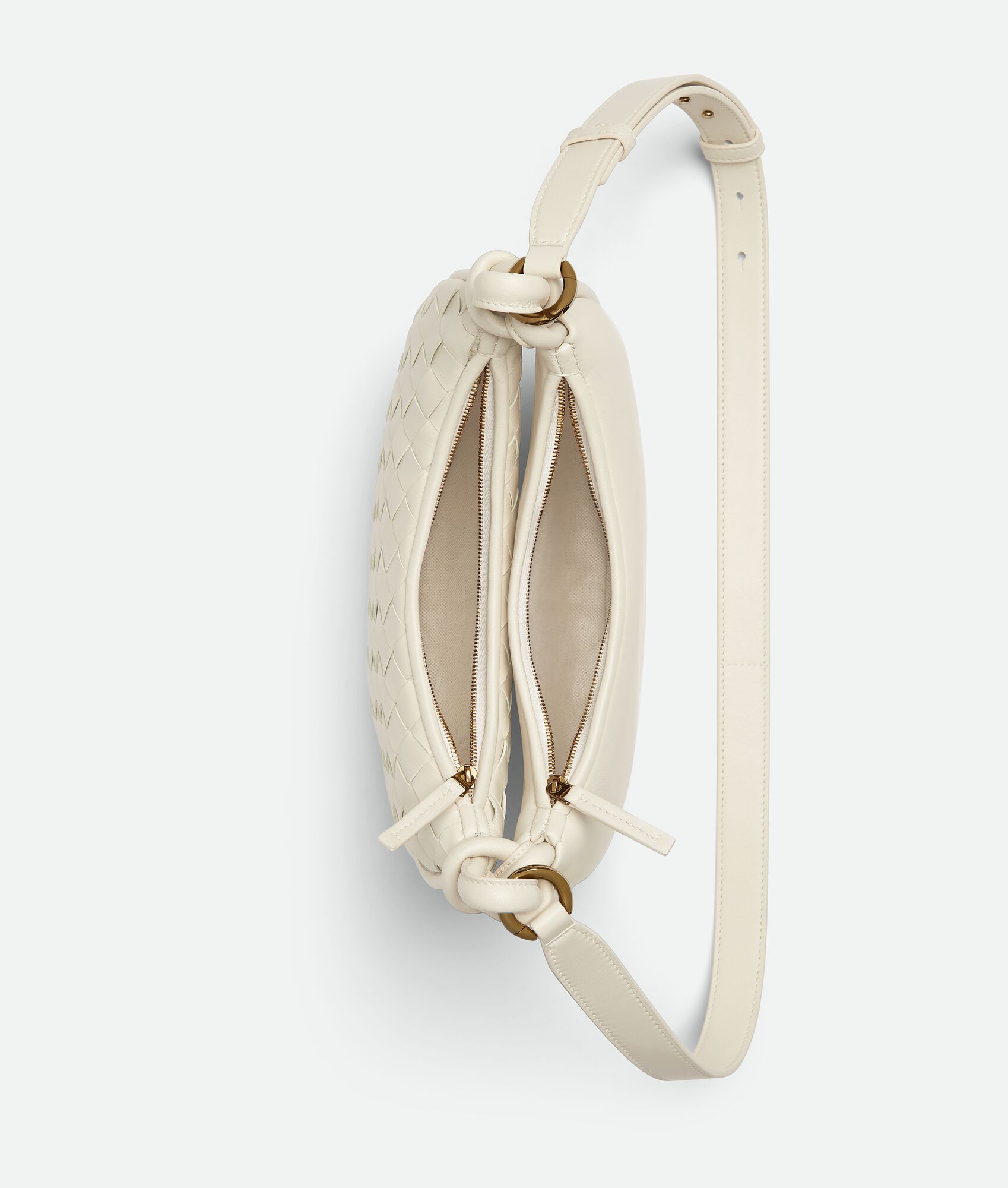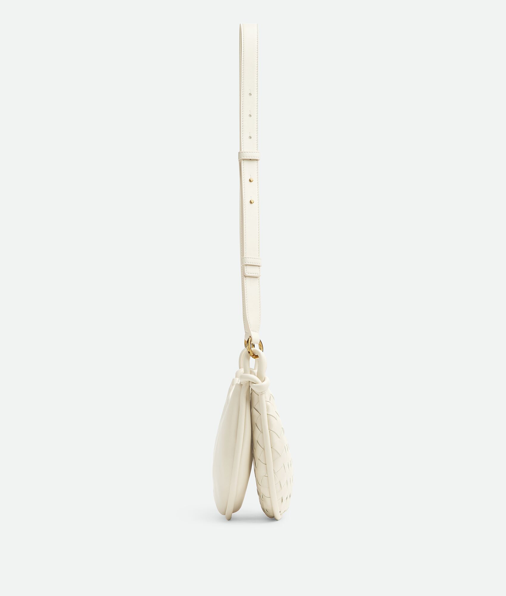 Small Intrecciato and smooth leather half-moon cross-body bag with adjustable strap Two main compartments Zip closure