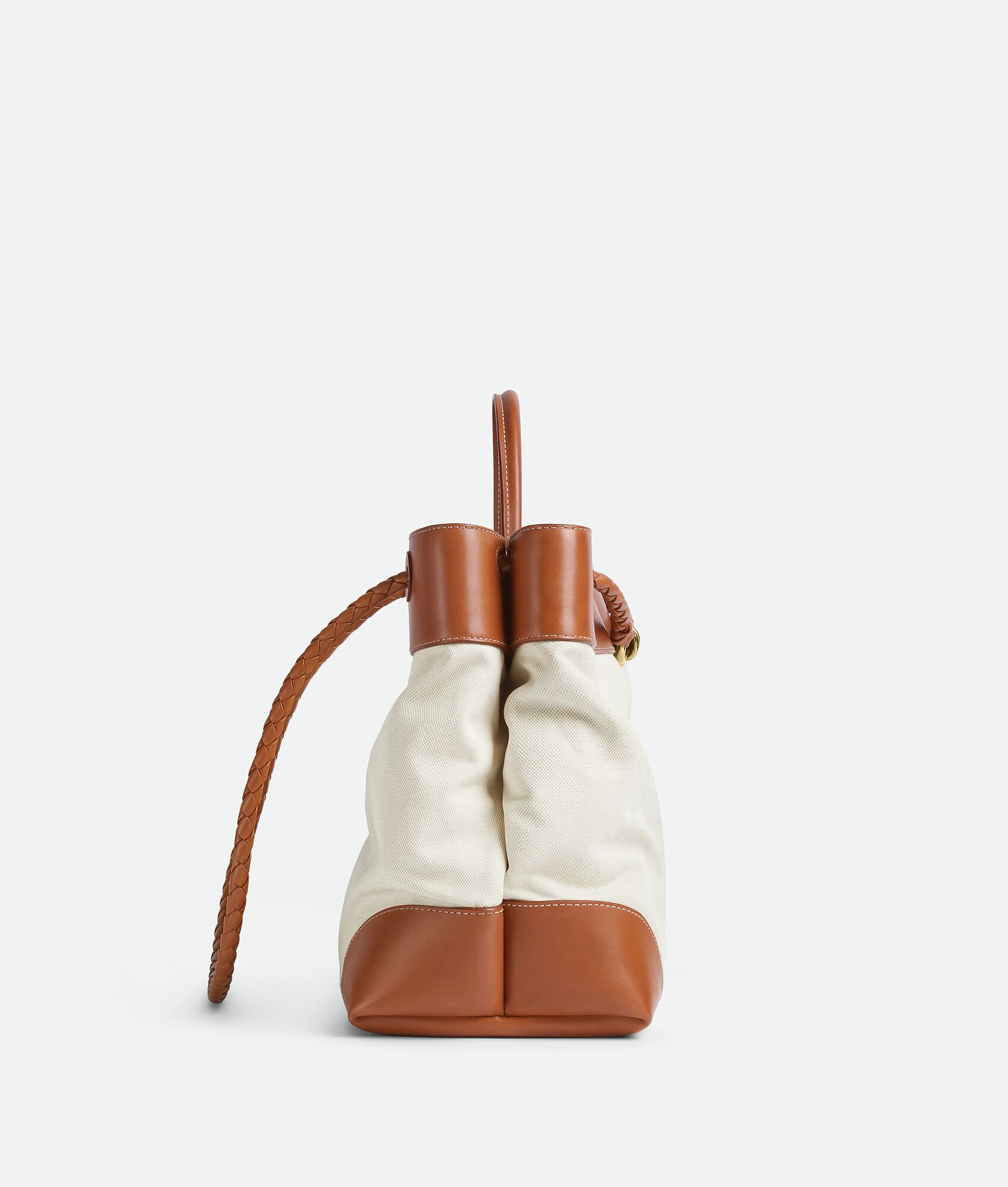 Large top handle bag in weathered leather and canvas Compartmented interior with one zipped pocket, two open pockets Magnetic closure