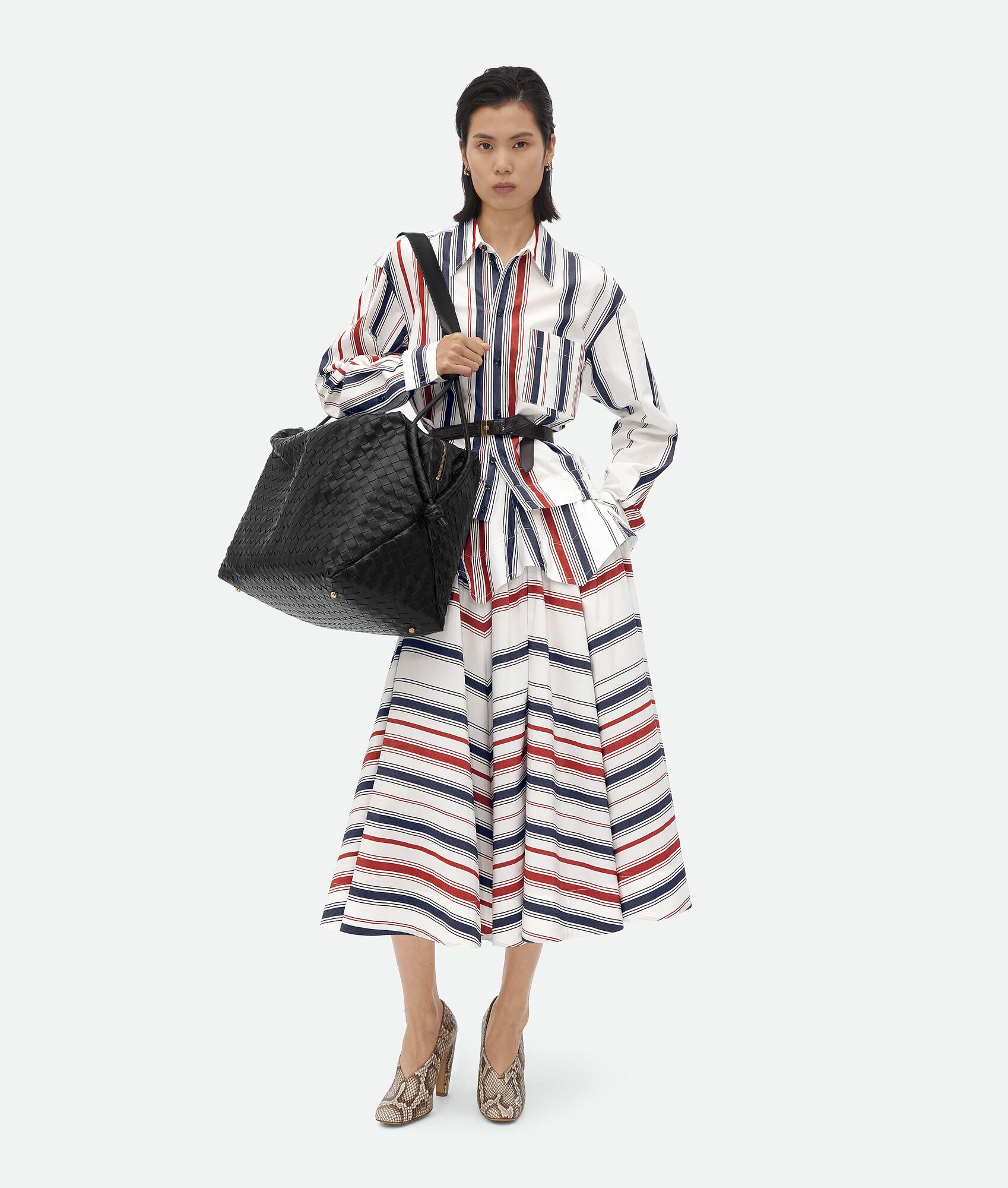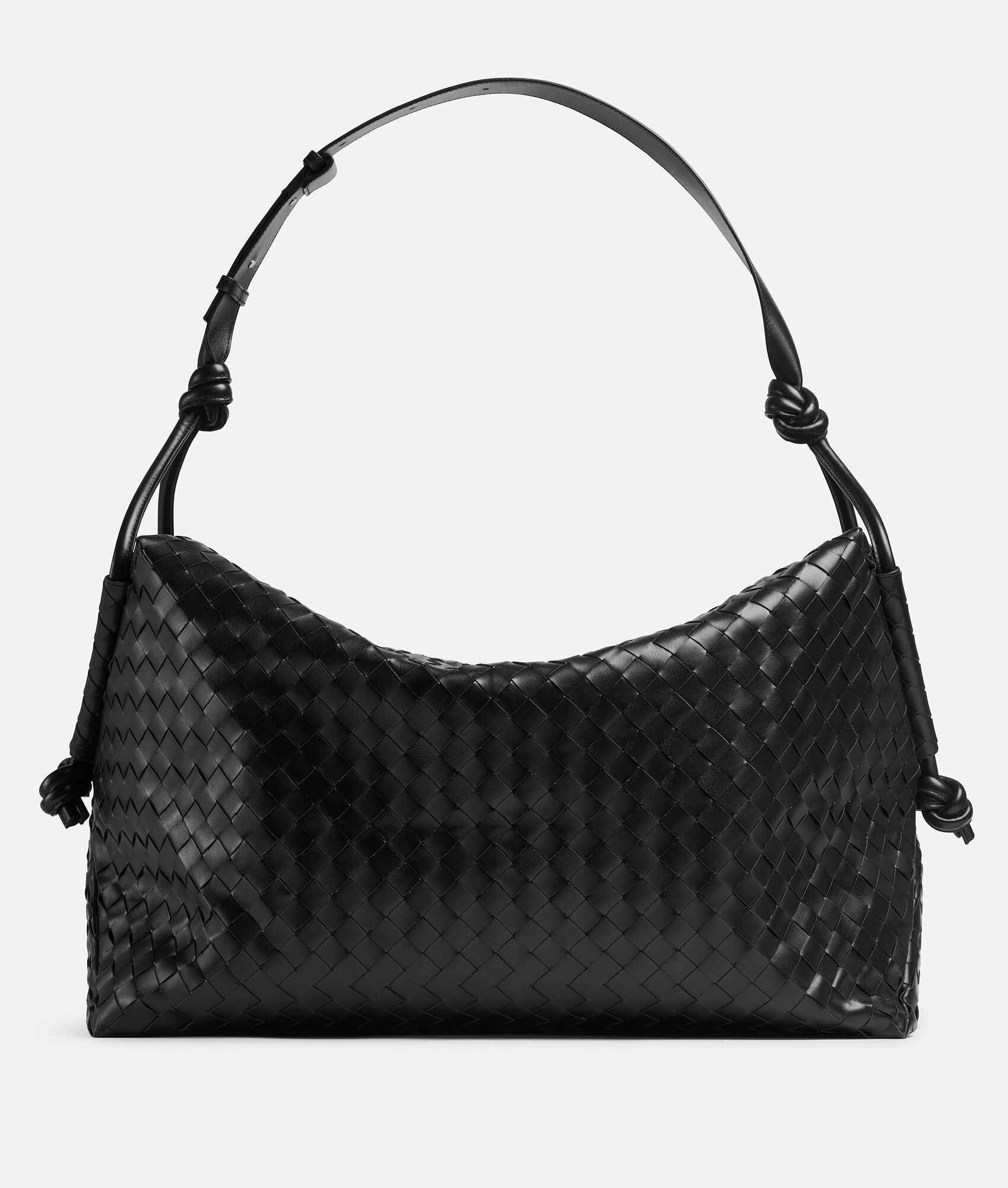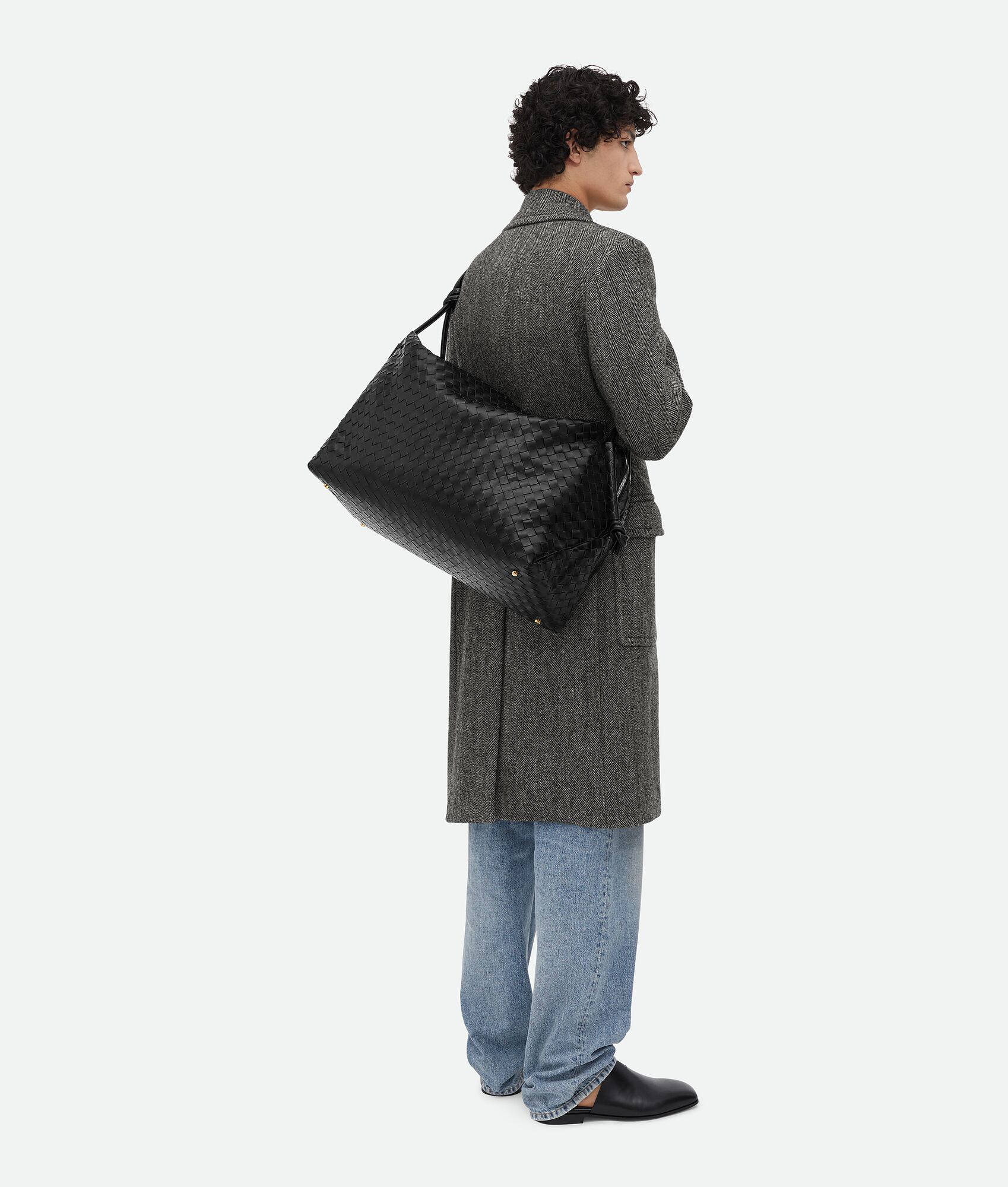 Large Intrecciato leather weekender with smooth leather strap adorned with four handmade leather knots