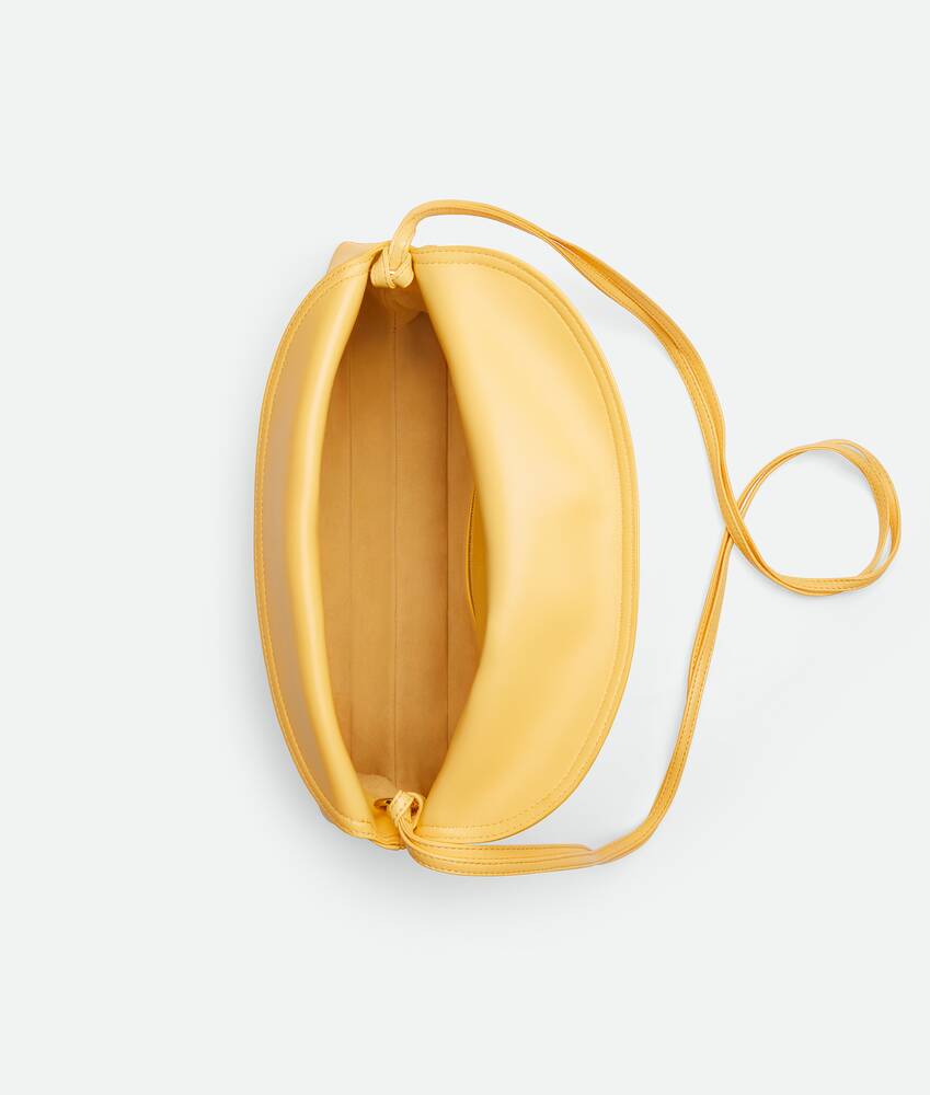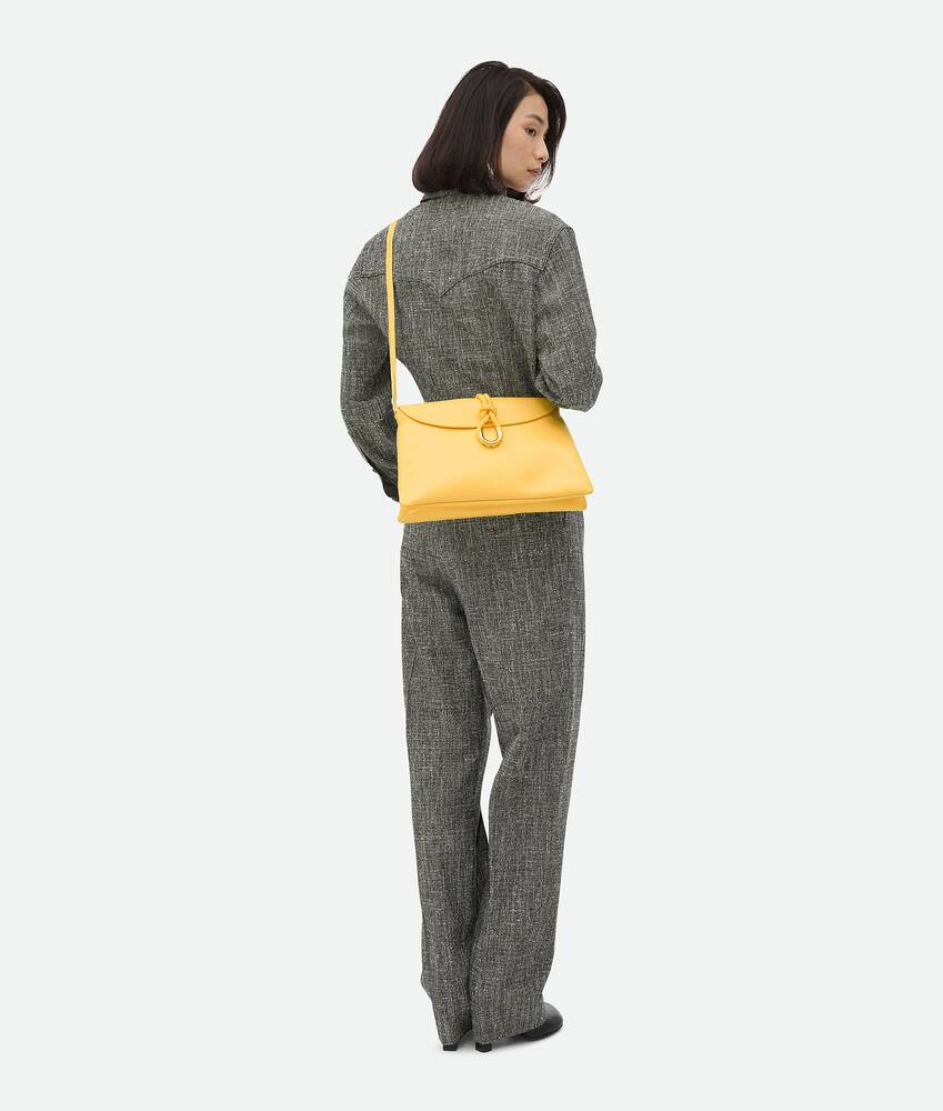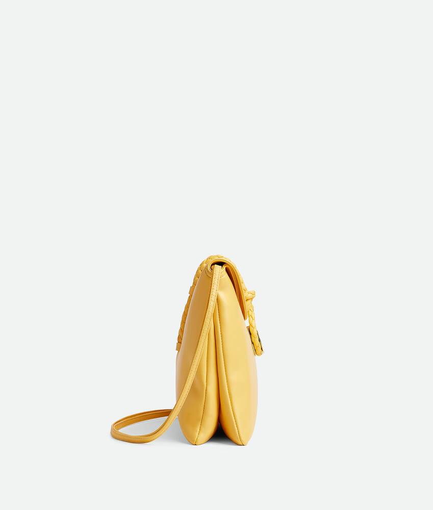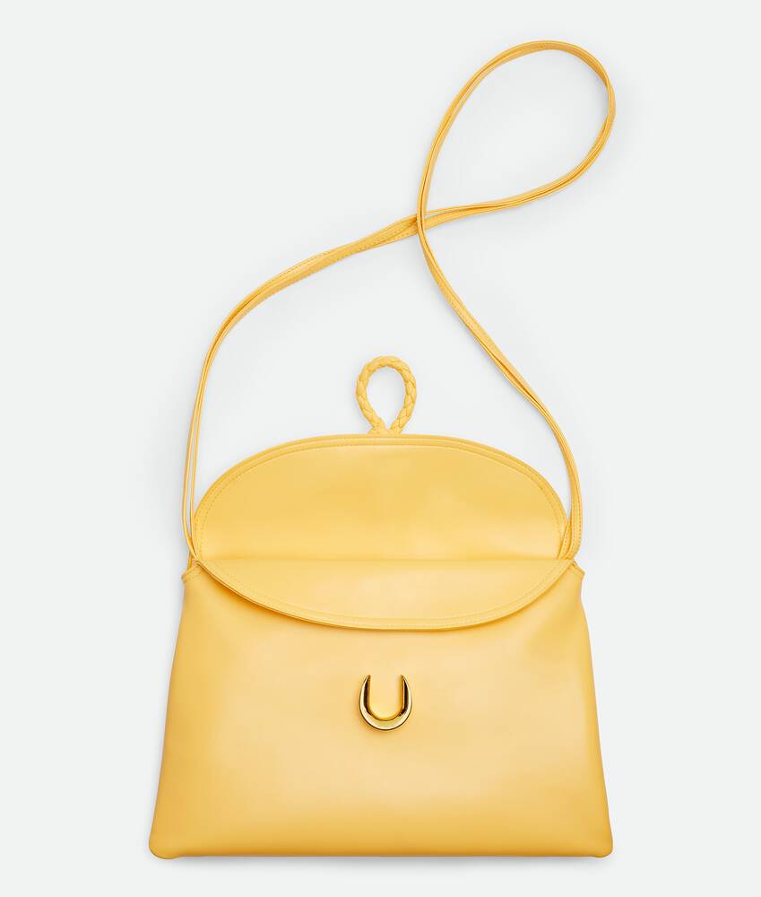 Cross-body bag in smooth calfskin leather with double flap and fastening system consisting of metal elements and coaxial cord