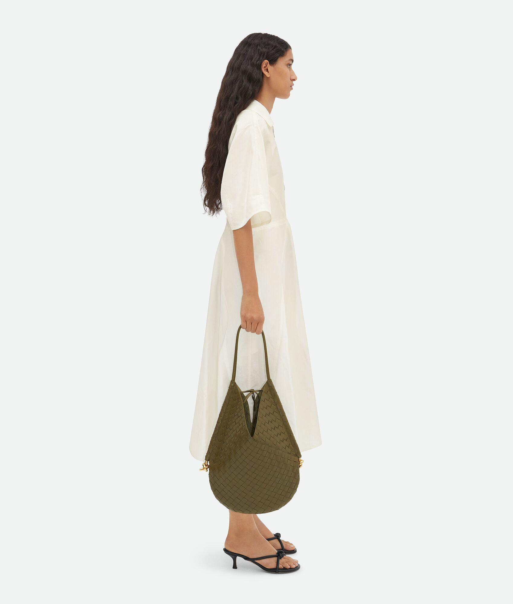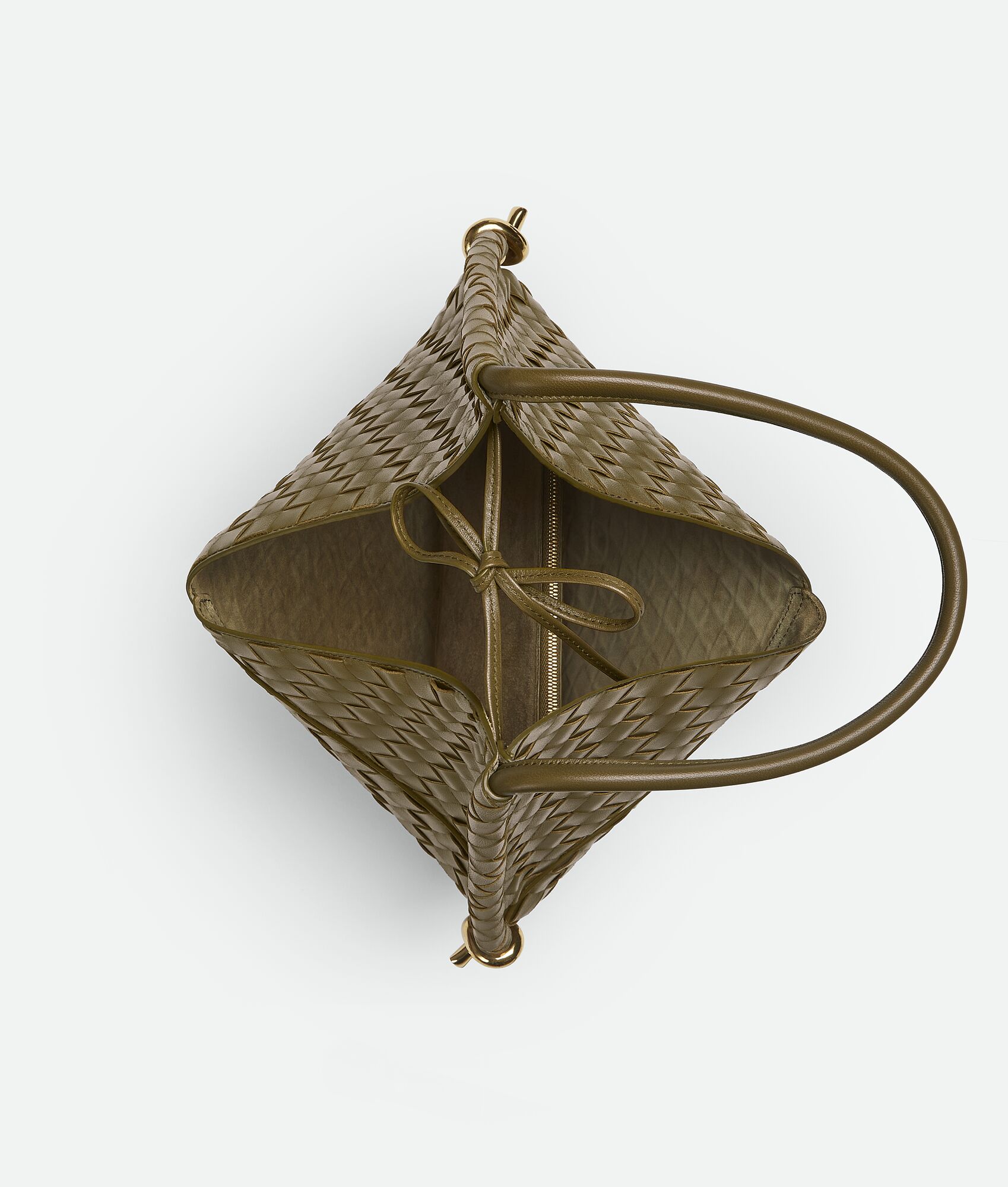 Medium Intrecciato leather shoulder bag Single detachable interior zippered pocket Leather string closure