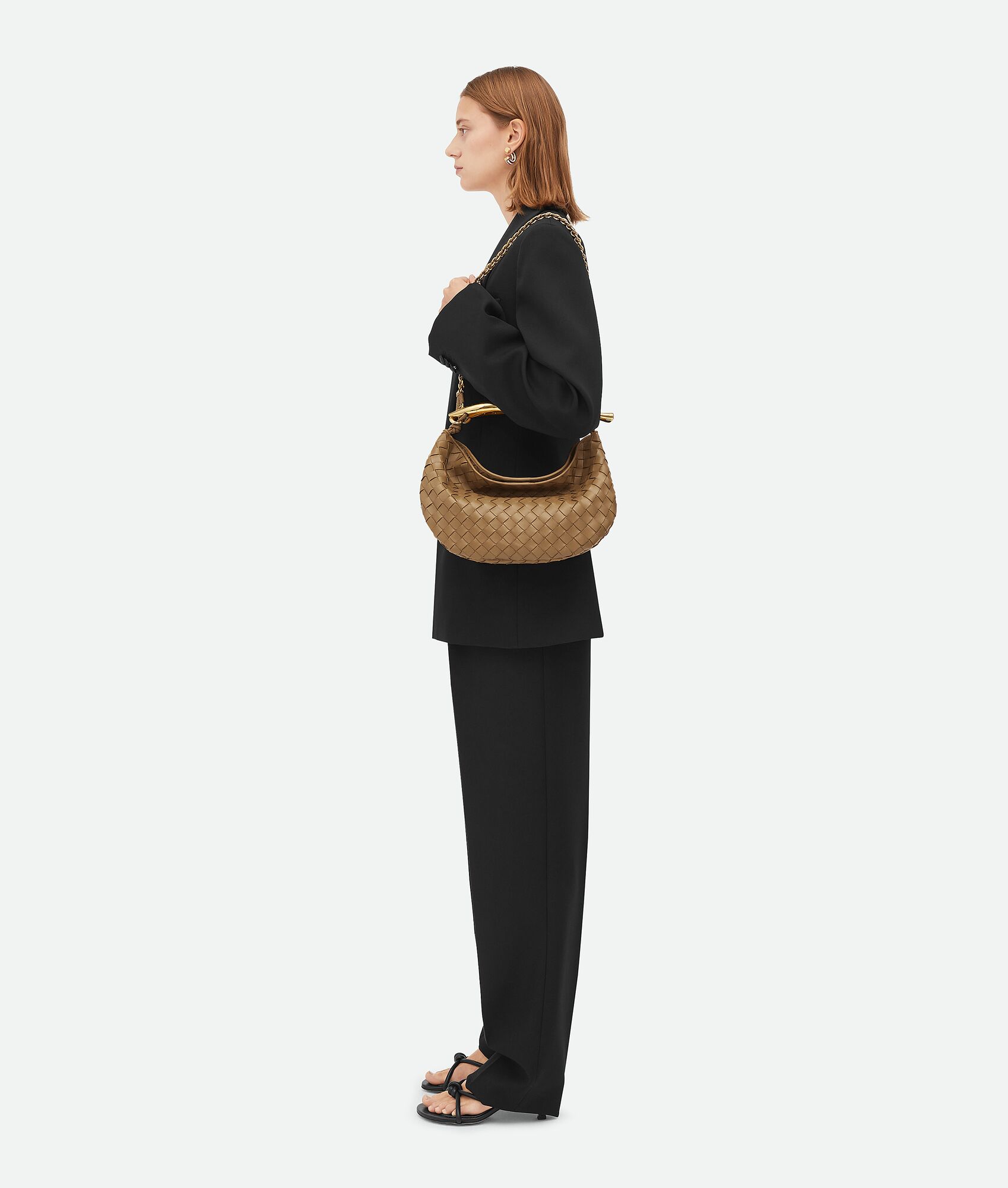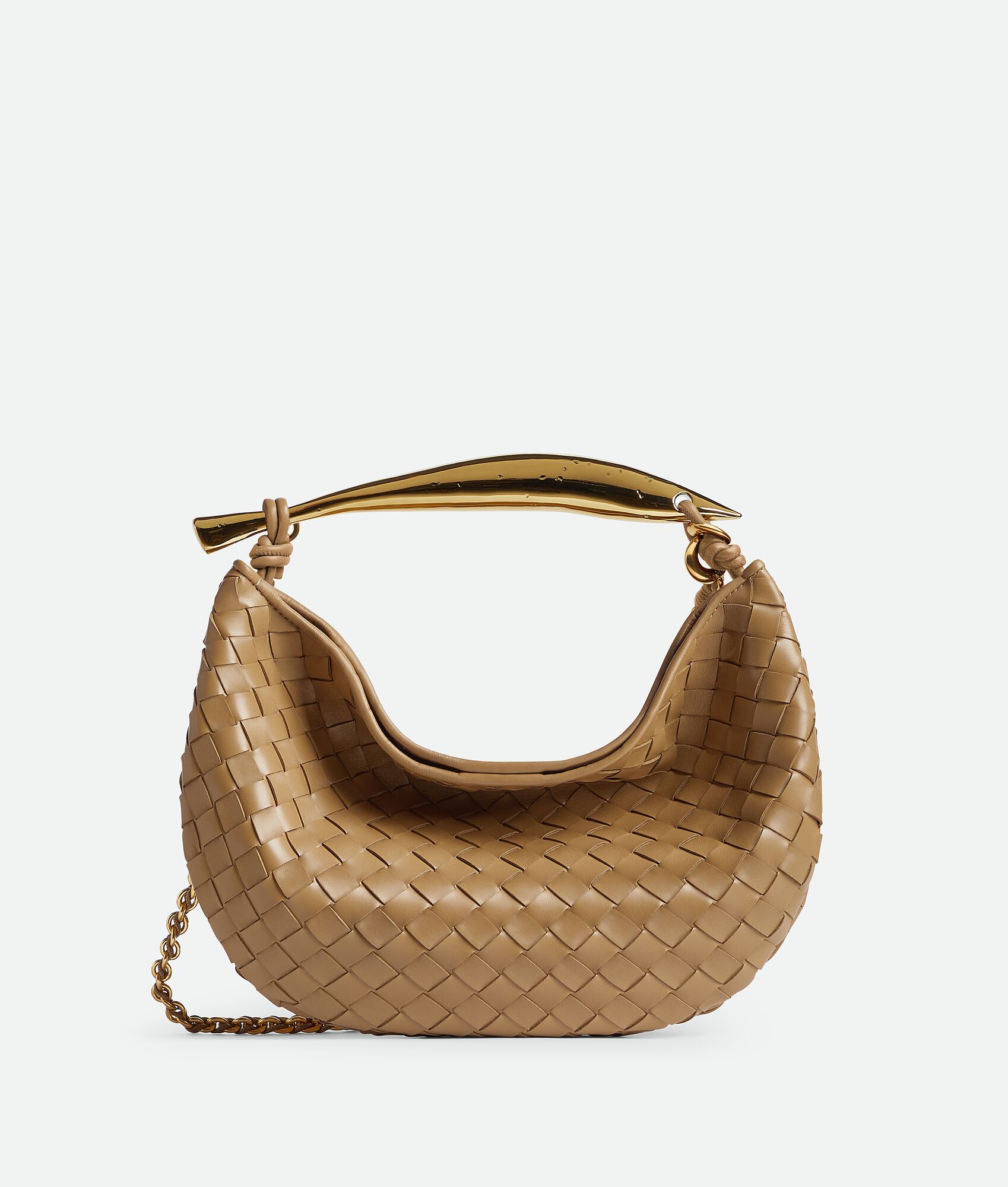 Small Intrecciato leather bag with metallic top handle enriched by a shoulder braided leather chain