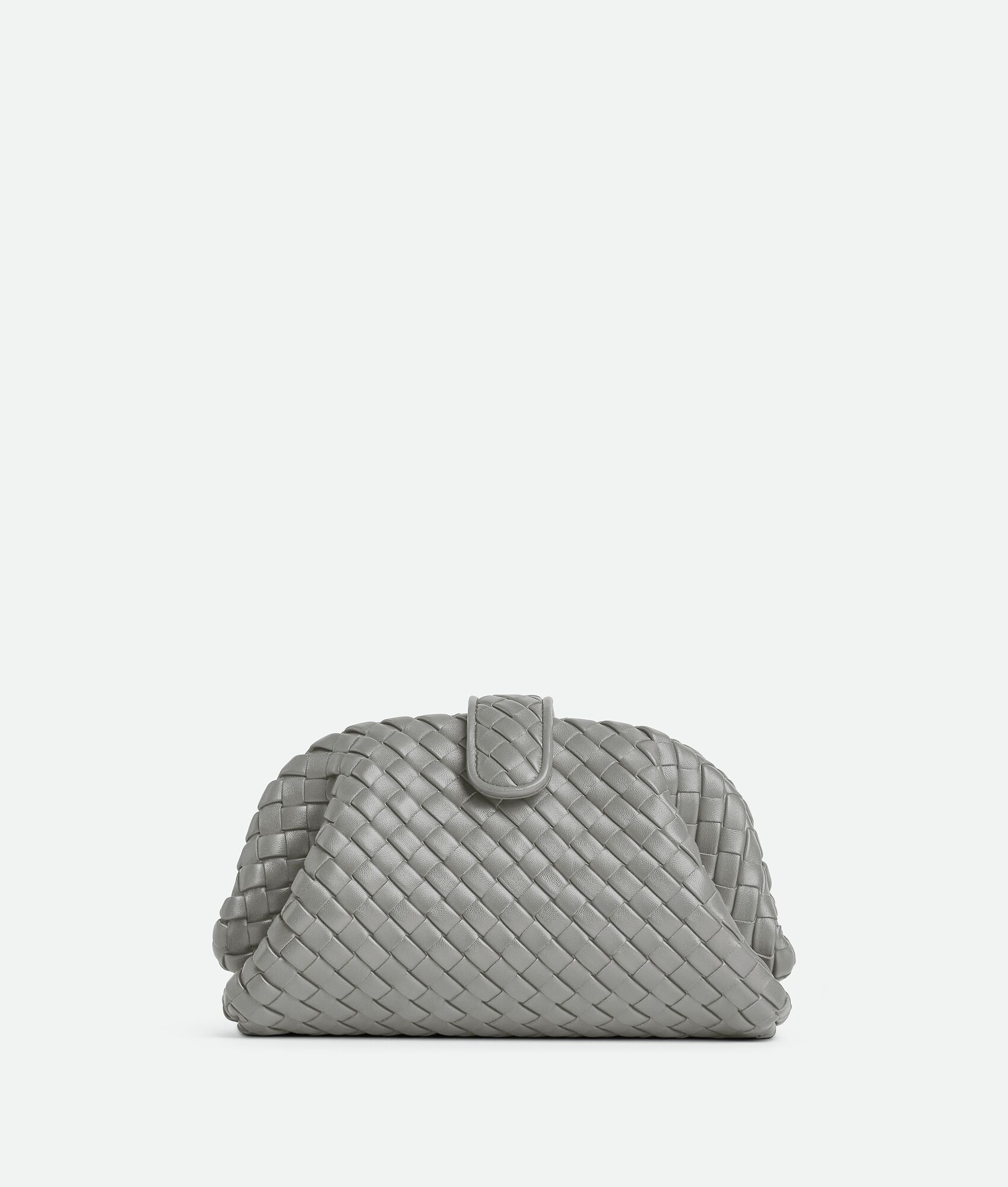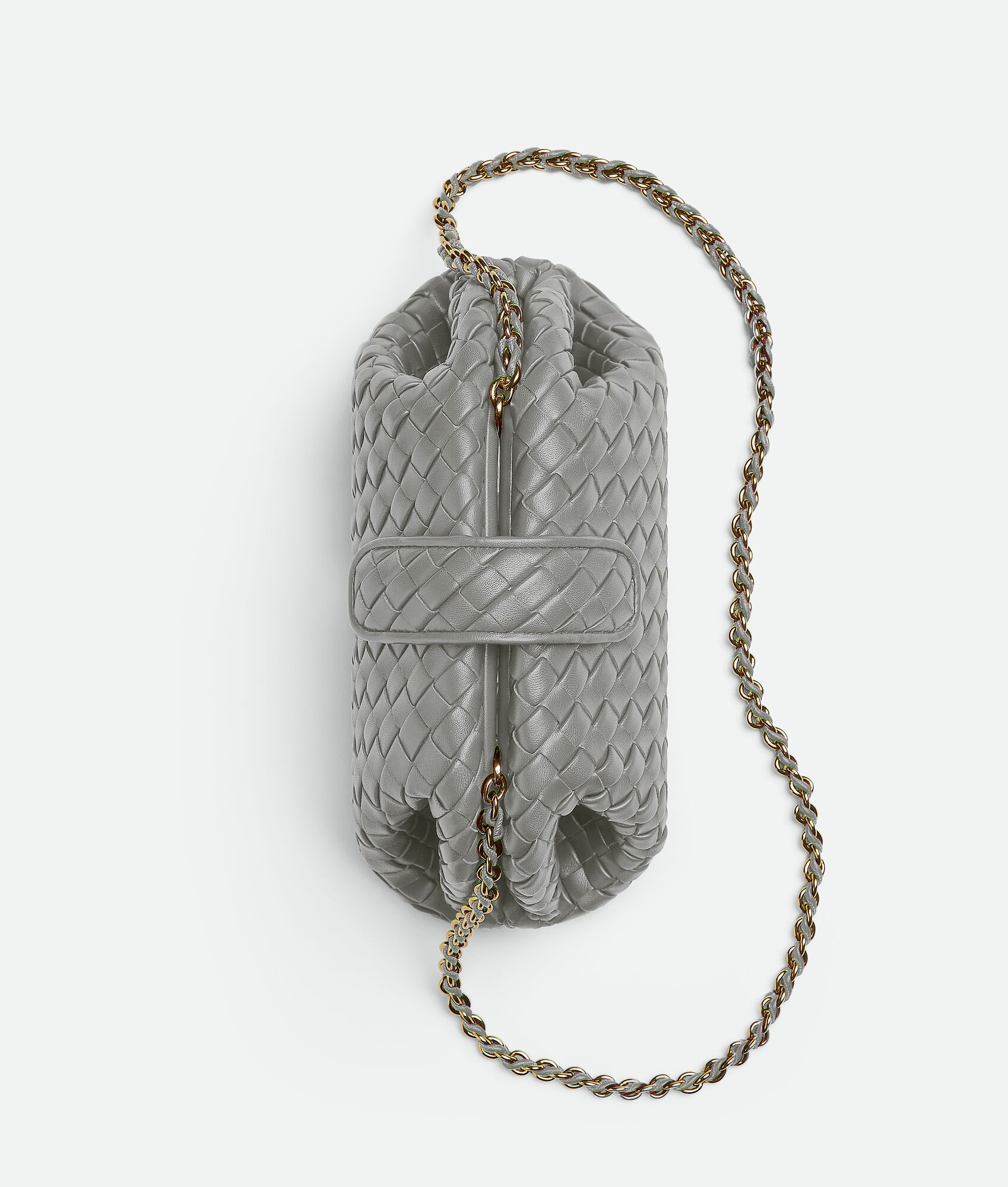 Padded Intrecciato leather mini clutch with leather braided cross-body metal chain