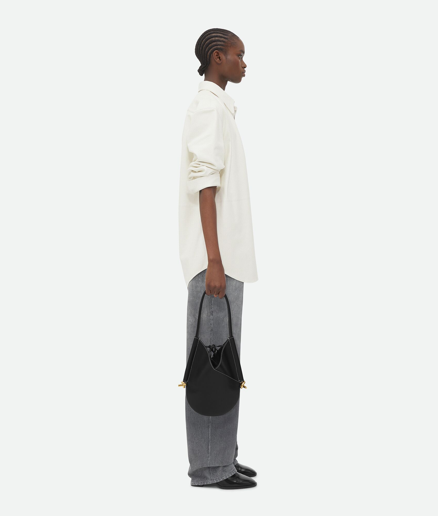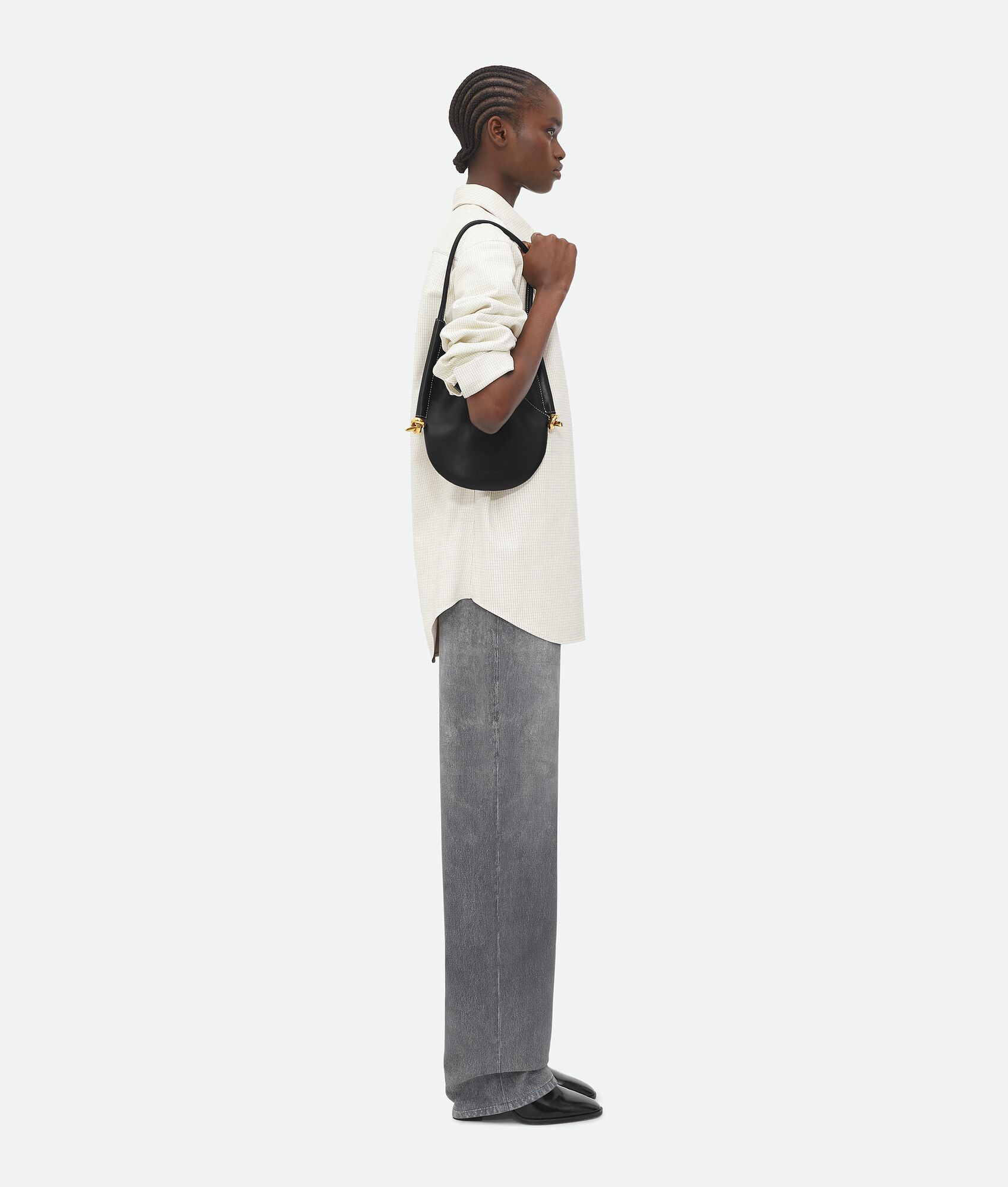 Small calf leather shoulder bag Single detachable interior zipped pocket Leather string closure