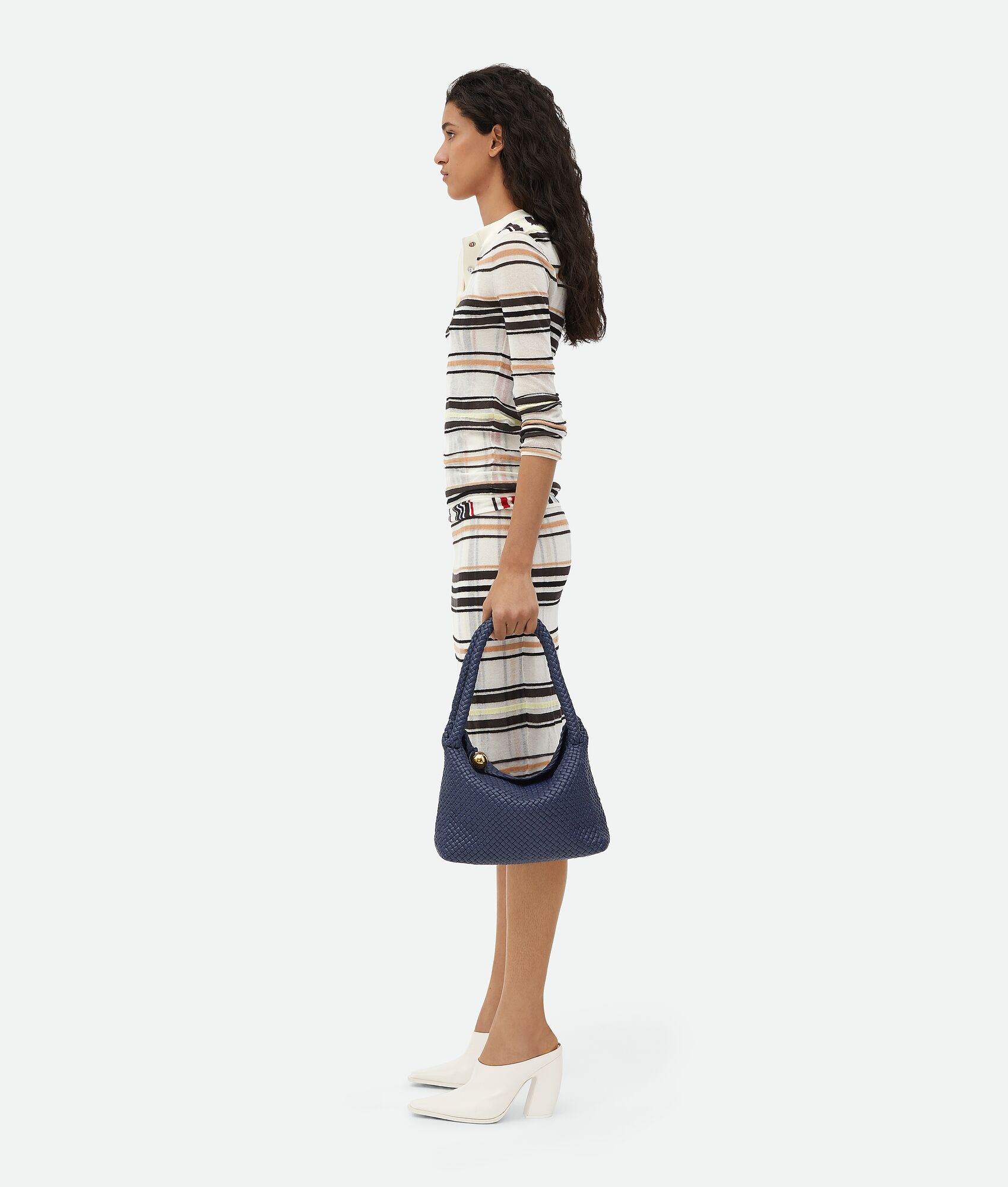 Small Intreccio leather shoulder bag Single compartment Flap closure with muse brass sphere embellishment