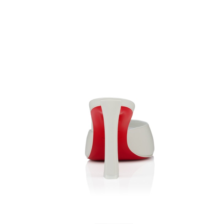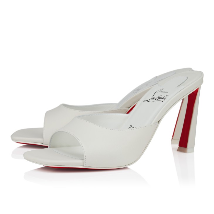 The summery Condora Mule features a square toe. This sophisticated style in white nappa leather has an audacious, refined vamp revealing the foot. It has an 85 mm bevelled heel, showcasing Maison Christian Louboutin’s innovation. With its sleek lines playing with graphic elements, this shoe exudes timeless elegance.