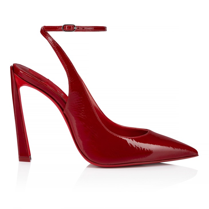The Condora Strap pump has a pointed toe reminiscent of a bird’s beak. This sophisticated style in Loubi red patent calf leather features an audacious vamp revealing the foot. It is distinguished by a 100 mm bevelled heel, showcasing Maison Christian Louboutin’s innovative creativity. The delicate, slender ankle strap evokes elegance. The ‘Vog patent leather’ material, being more flexible, offers better suppleness. Its wrinkled effect may have slight variations between the photo and the product.