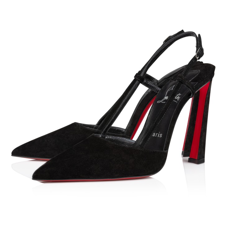 The Condoraline pump has a pointed toe reminiscent of a bird’s beak. This sophisticated model is crafted from black veau velours leather. Showcasing Maison Christian Louboutin’s ‘savoir-faire’, it is distinguished by its 100 mm bevelled heel. An elegant, sleek strap wraps around the foot.