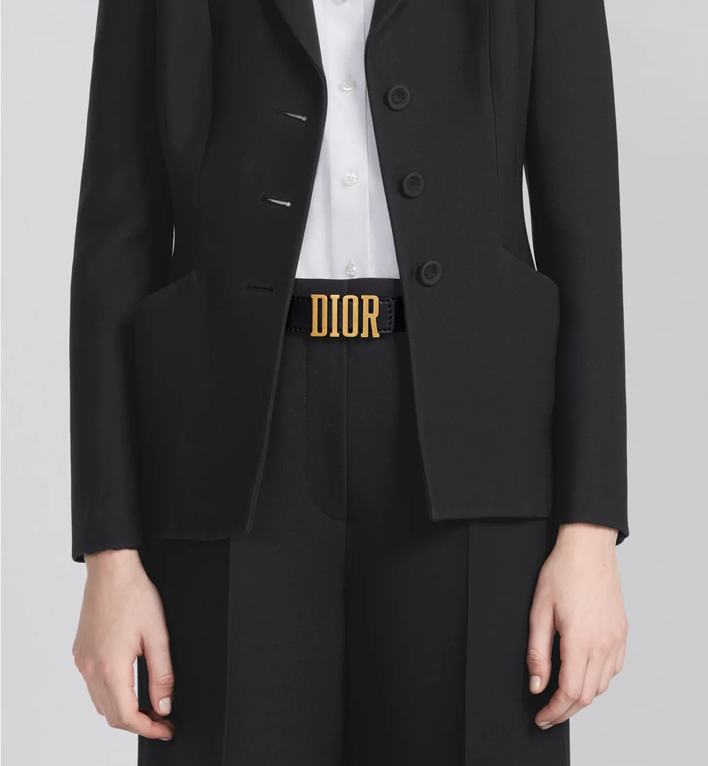 A bold and elegant look, the D-Fence belt is available in a reversible variation thanks to its removable buckle. Crafted in smooth calfskin featuring black on one side and latte on the other, the style is enhanced by an antique gold-finish metal Dior buckle. The design also features two removable loops that can be worn in an either tonal or contrasting fashion. Highlighting the waist with elegance, the belt will coordinate well with jeans, a skirt or a dress.