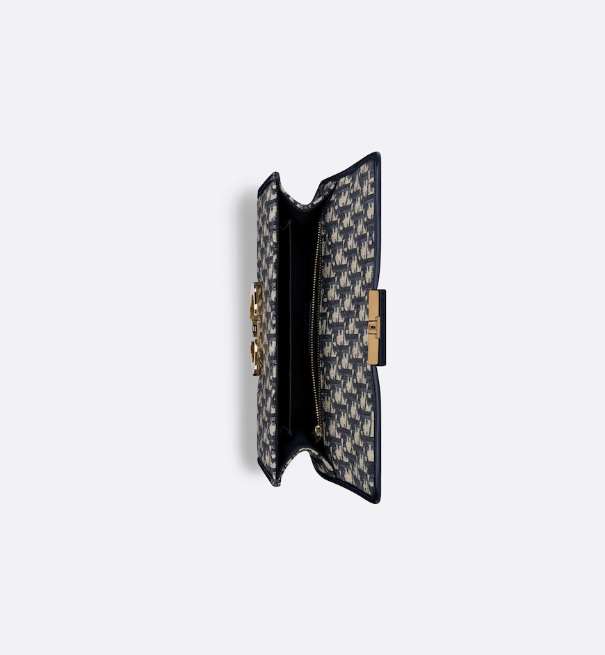 The 30 Montaigne line is inspired by the emblematic address and offers essential pieces that embody the House’s iconic codes. The bag is crafted in blue Dior Oblique jacquard for an elegant and timeless look. The flap is embellished with an antique gold-finish metal CD clasp, inspired by the seal of a Christian Dior perfume bottle. Refined details such as an embossed 30 Montaigne signature on the back, define this unique design. Featuring an adjustable leather shoulder strap, the 30 Montaigne bag can be carried by hand, worn over the shoulder or crossbody.
