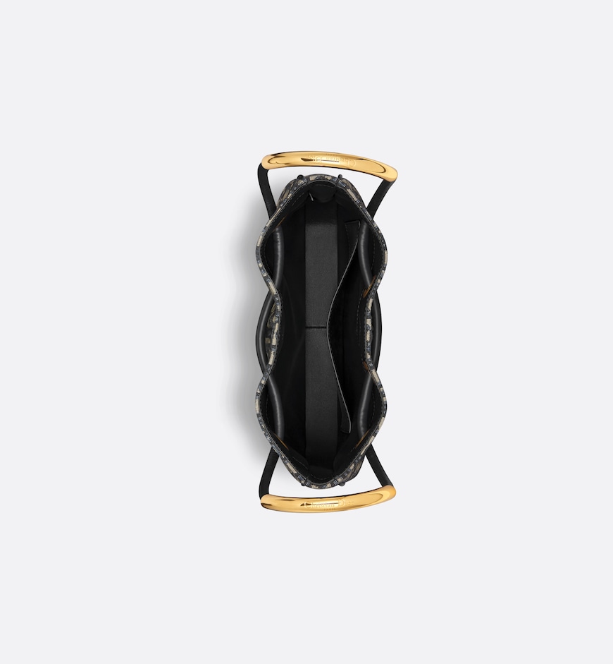 New for Fall 2024, the Dior Nolita bag redefines House codes of modern elegance with a refined and contemporary silhouette. The blue Dior Oblique jacquard is complemented by structured top handles embellished with antique gold-finish metal, as well as sliding D.I.O.R. charms which lend a touch of movement. The drawstring closure reveals a practical interior with a slip pocket, while the adjustable and removable leather strap allows the medium bag to be carried by hand, worn over the shoulder or crossbody.