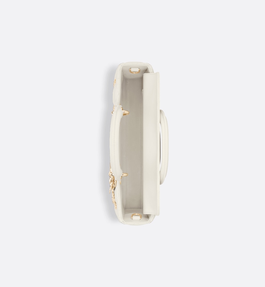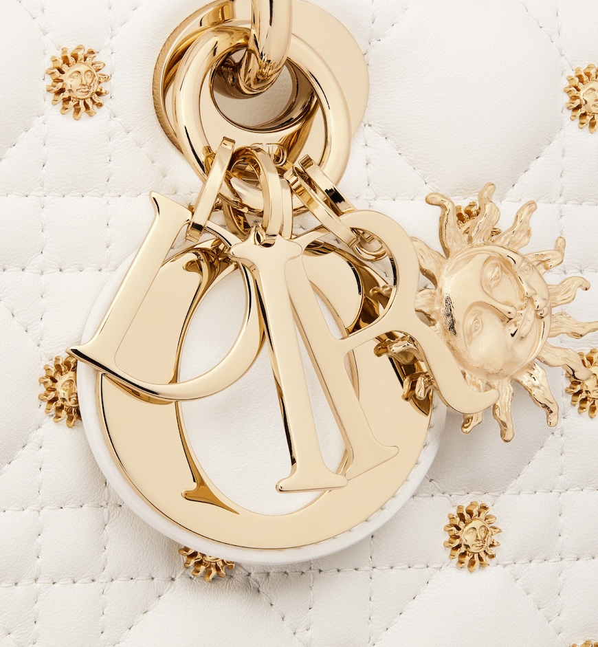 The Lady D-Joy bag captures the House’s vision of elegance and beauty by showcasing the iconic streamlined aesthetic of the Lady Dior line. Made in latte Cannage lambskin, it is accented with gold-finish sun studs, referencing the collection’s signature theme, while the D.I.O.R. charms are completed by a pale gold-finish metal sun charm illuminating the silhouette. Featuring one removable chain strap and another adjustable and removable leather strap, the medium Lady D-Joy bag can be carried by hand, worn over the shoulder or crossbody as a daily companion.