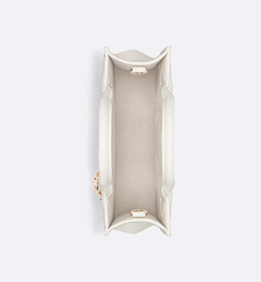 The Dior Book Tote is a House classic and original design by Maria Grazia Chiuri, Creative Director of Christian Dior. Constructed in latte calfskin, it is embellished with hallmark Macrocannage topstitching and accented by pale gold-finish metal D.I.O.R. charms adorning one of the top handles. Exemplifying House savoir-faire, the miniature style features an adjustable and removable strap that allows it to be carried by hand, worn over the shoulder or crossbody.