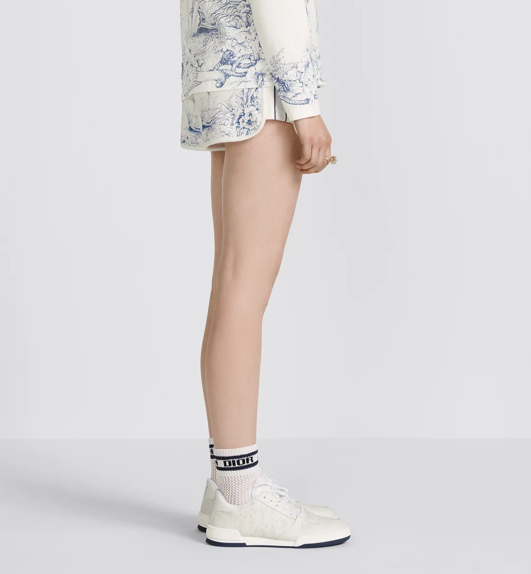 The season’s new Dior One sneaker showcases the House’s savoir-faire with a modern creation. Crafted in white calfskin, it is distinguished with perforated inserts that reveal the Dior Oblique motif. A star embellishes the insole, while the tongue features the ‘Christian Dior PARIS’ signature. The sneaker will complete all of the season’s casual outfits.