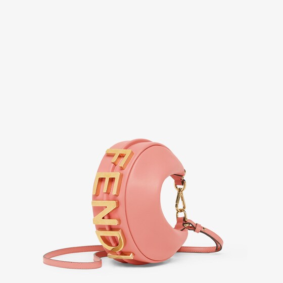 Mini hobo bag made of soft pink leather, embellished with vintage gold metal FENDI lettering.