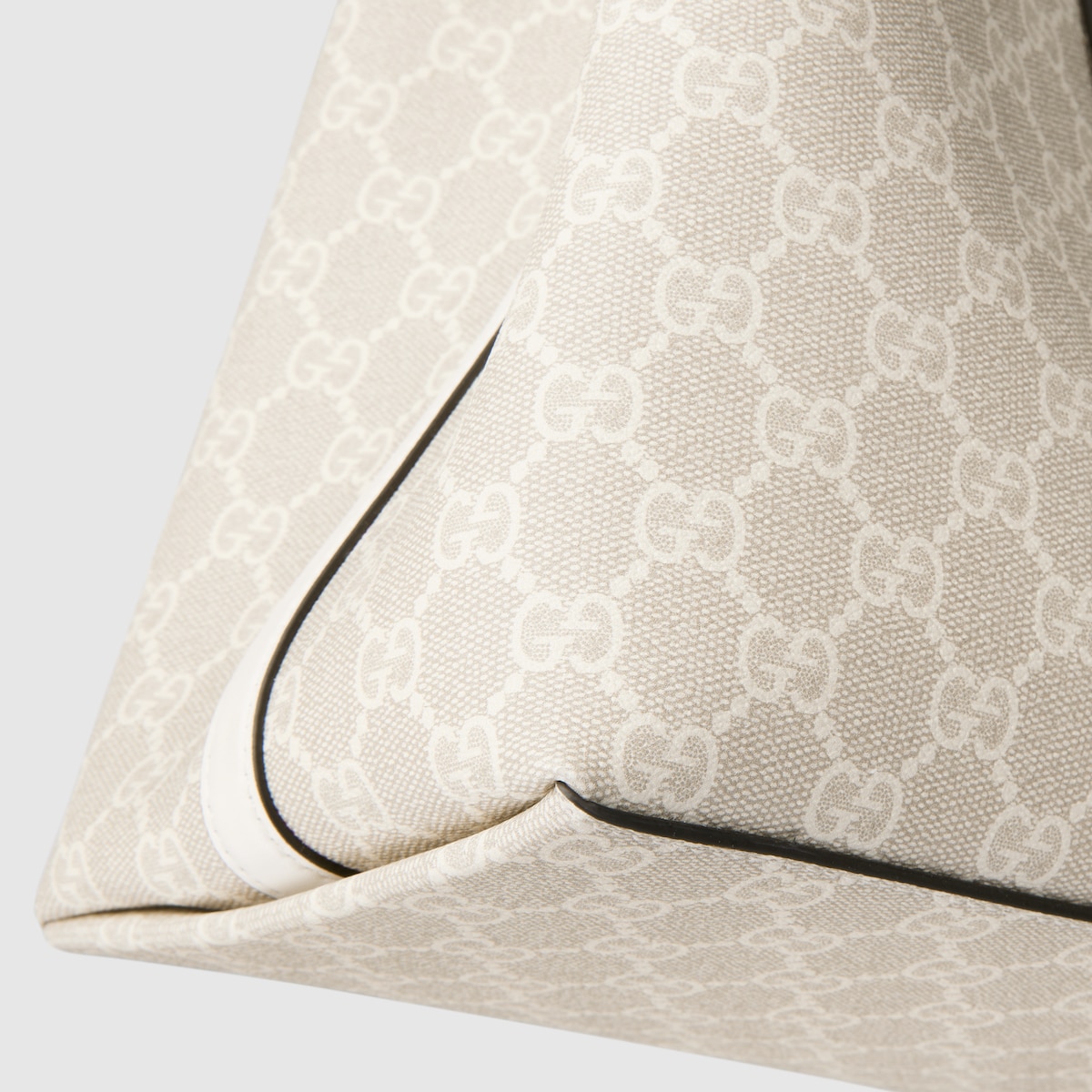 The new GG Emblem collection reinterprets the House??s history of elegance and craftsmanship. This medium tote bag features numbered notches on the adjustable top handles, inspired by the equestrian world.
