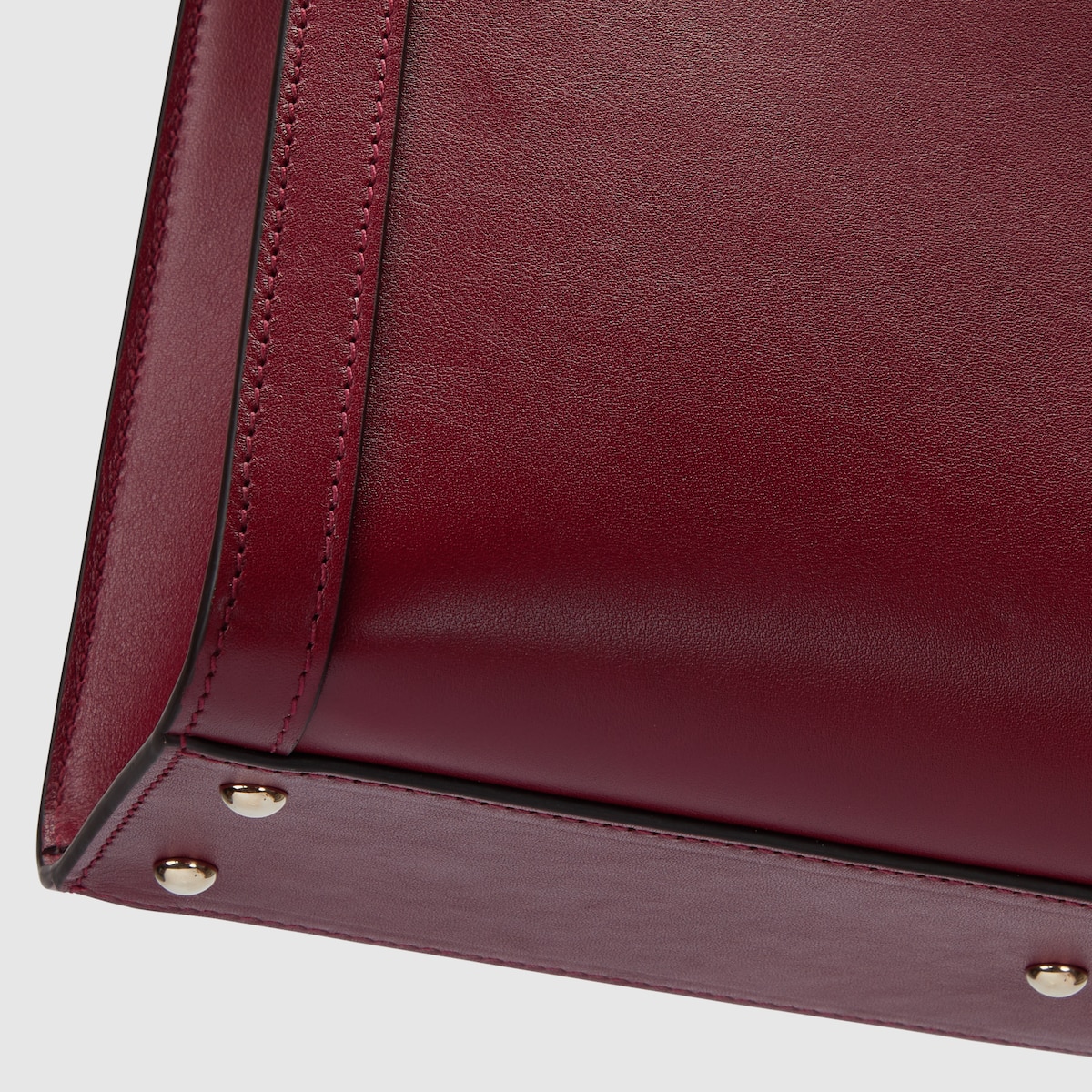 In the Spring Summer 2025 collection, Gucci Diana reinterprets the signature bamboo hardware with tonal leather handles. This style can also be worn crossbody or over the shoulder.