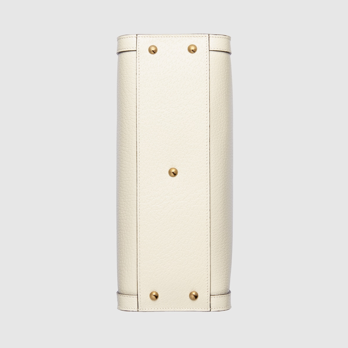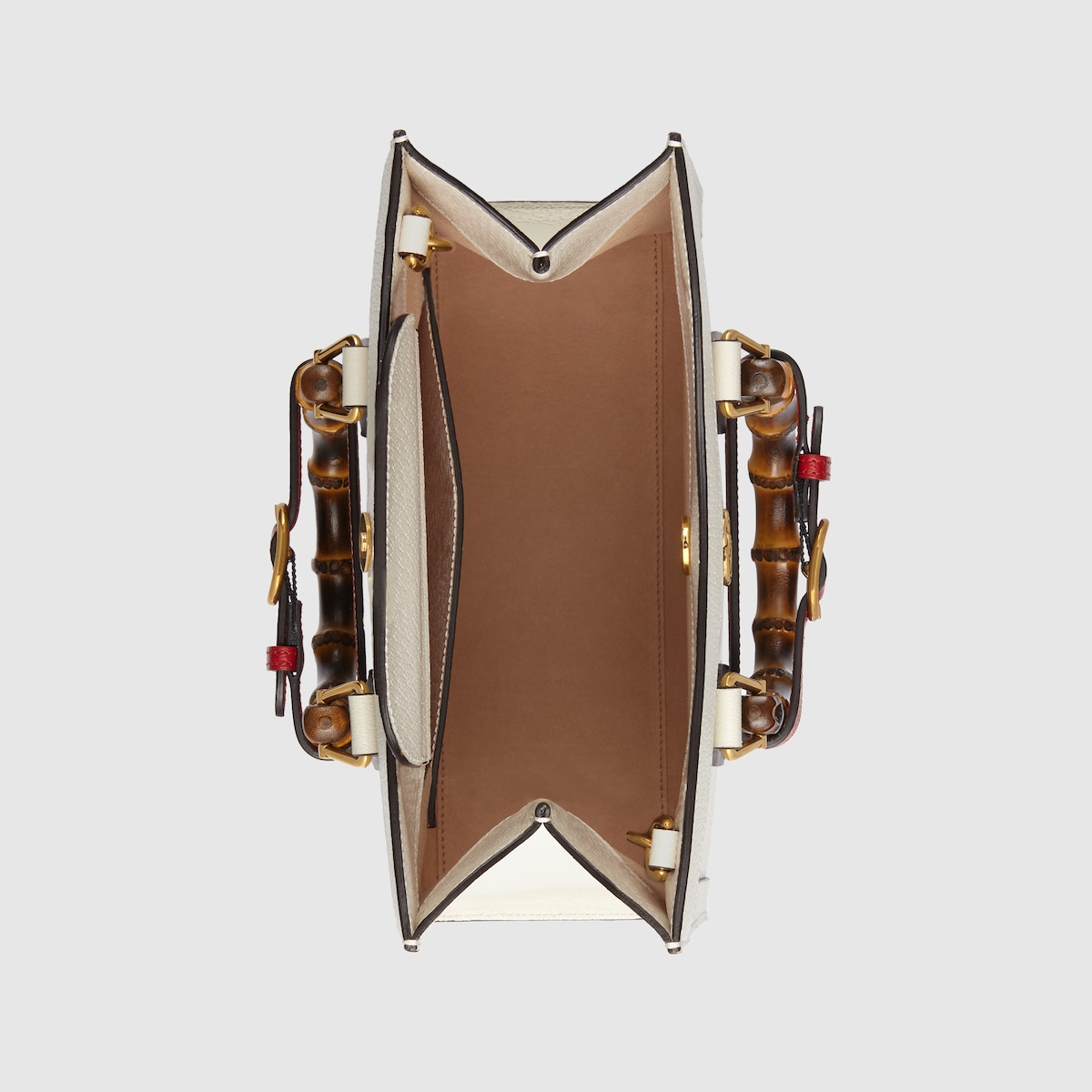 The concept of reinvention continues to shape the House’s designs. An evolution of a bamboo handle tote first introduced in 1991, the Gucci Diana represents the notion of style in constant evolution. The design plays with traditional details and renews them new meaning. Playing with this idea, the functional bands used to keep bamboo handles in shape are reimagined as playful leather belts. Here, the tote is introduced in white leather.