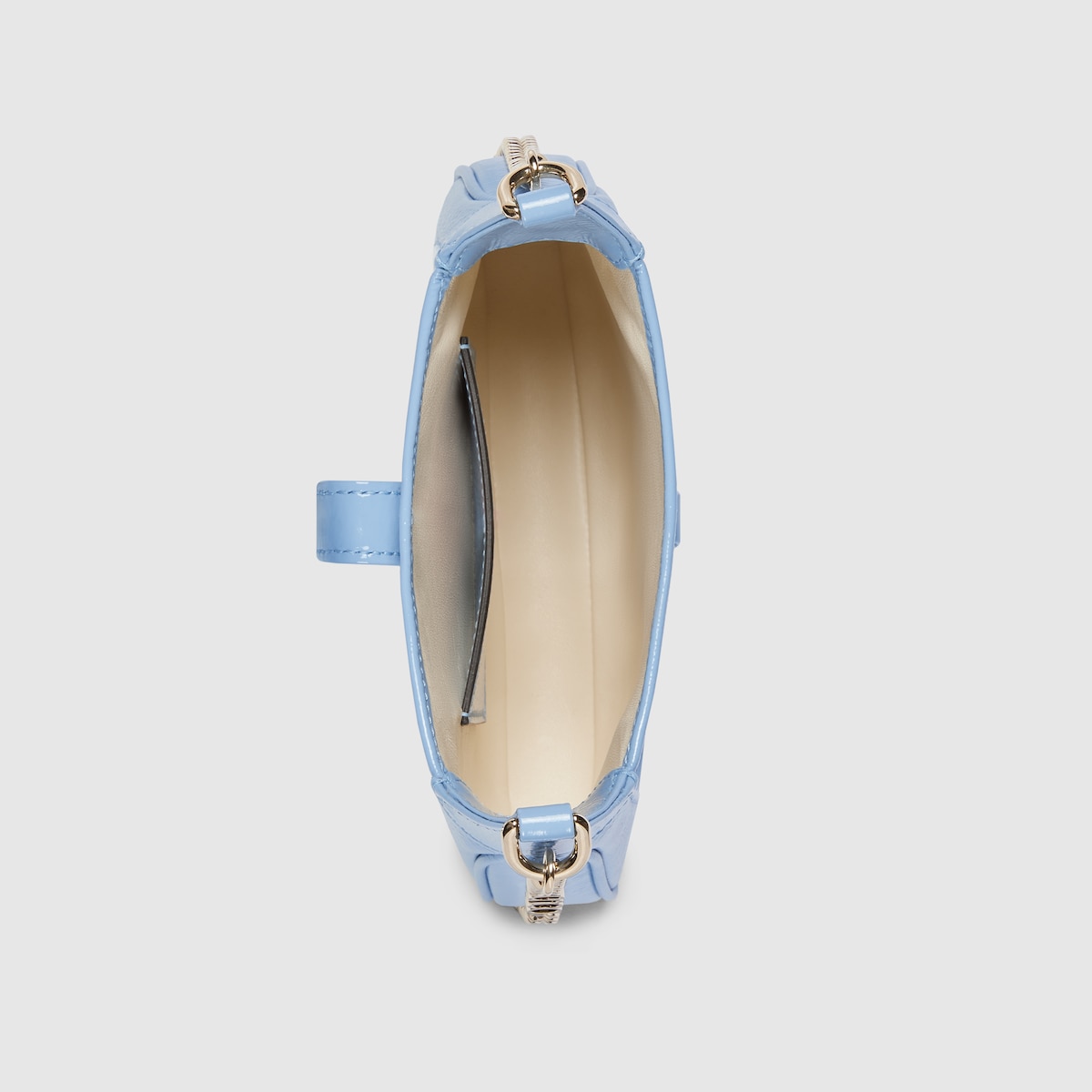 Inspired by the summer spirit and beach clubs on the Italian coast, this item is part of Gucci Lido. The Jackie Notte embodies the self-confidence of the iconic Jackie line, with a new silhouette and subtle details that make it perfect for day to night wear. Sky blue patent leather, a hook closure, and light gold-toned Gucci lettering chain strap give this mini shoulder bag a unique touch.